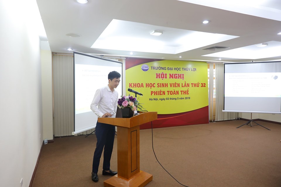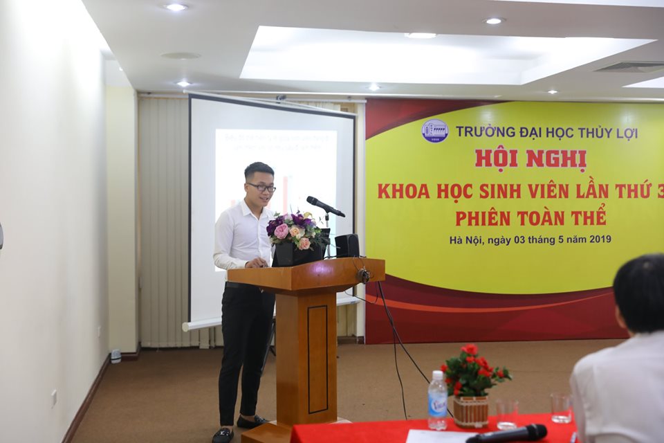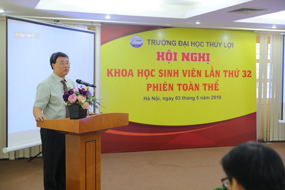 Phát biểu khai mạc tại Phiên toàn thể, PGS.TS. Nguyễn Cảnh Thái – Phó hiệu trưởng khẳng định: Đối với mỗi sinh viên, nghiên cứu khoa khọc là nhiệm vụ rất quan trọng khi bước chân vào giảng đường đại học. Bên cạnh các kiến thức lý luận thu nhận trên giảng đường, việc tham gia vào quá trình nghiên cứu sẽ giúp thu hẹp khoảng cách giữa lý luận và thực tiễn, gắn lý thuyết với thực hành, gắn kết quả học tập với thực tiễn của xã hội. Hoạt động này còn trau dồi, rèn luyện các kĩ năng và tư duy nghiên cứu của sinh viên”. Bên cạnh đó thầy Phó Hiệu trưởng nhấn mạnh “Trường Đại học Thủy lợi luôn coi nghiên cứu khoa học sinh viên là nhiệm vụ quan trọng trong hoạt động đào tạo và nghiên cứu. Điều này đã giúp khơi gợi niềm đam mê, sáng tạo trong sinh viên và hỗ trợ hữu hiệu cho hoạt động đào tạo của Nhà trường”.
