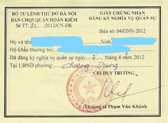 Giấy chứng nhận đăng ký nghĩa vụ quân sự