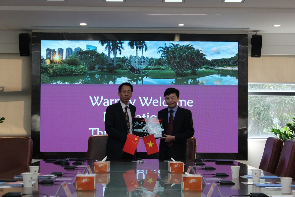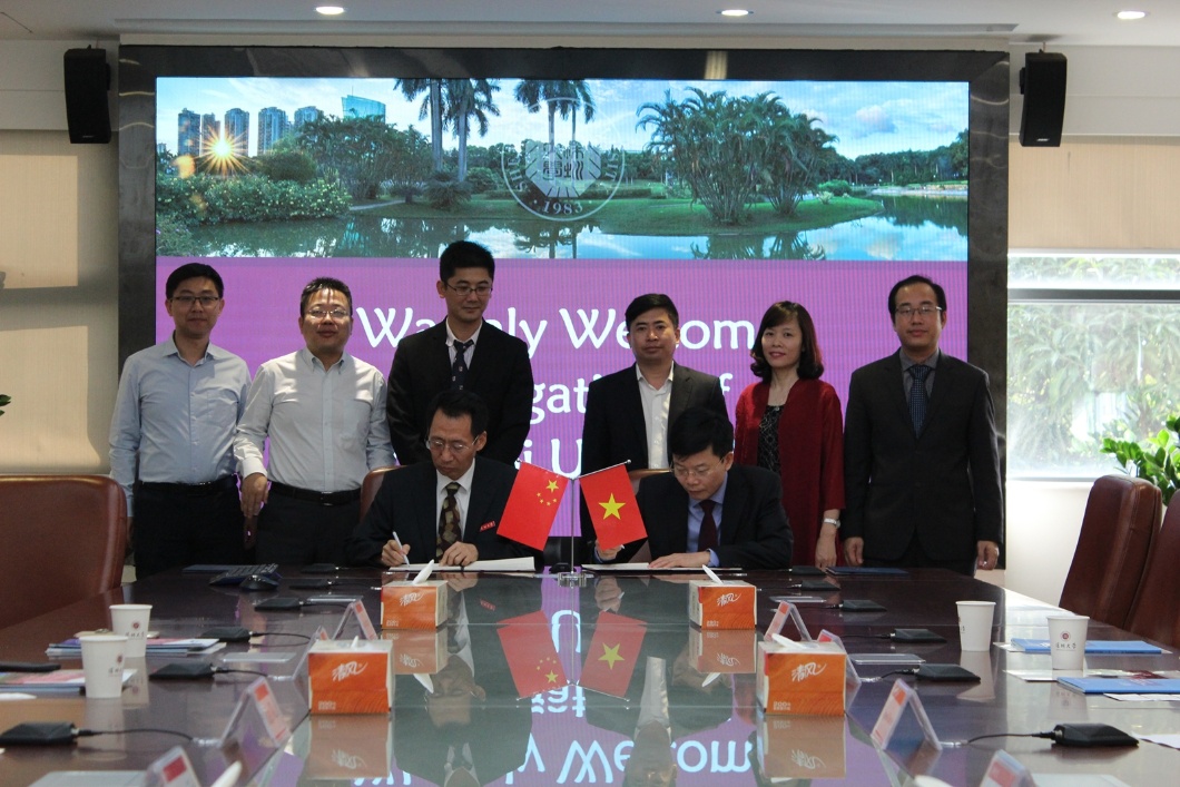 GS. Du Hongbiao – Phó Hiệu trưởng thường trực đã giới thiệu nhanh về đặc khu kinh tế Thâm Quyến và lịch sử phát triển của SZU. Trong không khí thảo luận cởi mở giữa lãnh đạo hai trường và các đơn vị chức năng, hai bên đã thống nhất ký MOU trong công tác đào tạo, nghiên cứu khoa học, hướng đến hai đối tượng chính là giảng viên và sinh viên; hai trường sẽ tiến hành trao đổi, chia sẻ tài liệu giảng dạy, học tập, giao lưu quảng bá văn hóa của hai quốc gia và các hoạt động khác khi có sự thống nhất từ hai phía. Trước mắt là hợp tác và đào tạo trong lĩnh vực Công nghệ thông tin, sau đó mở rộng hợp tác ra các lĩnh vực khác như Xây dựng, Kinh tế, Điện tử, Cơ khí, … .