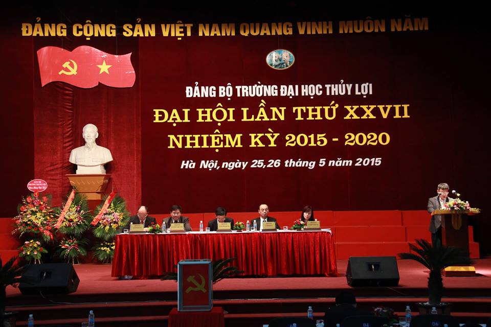 Thực hiện Kế hoạch số 73-KH/ĐUK ngày 01/08/2014 của Đảng ủy Khối các trường ĐH, CĐ Hà Nội về việc tiến hành Đại hội đảng các cấp tiến tới Đại hội đại biểu lần thứ II, Đảng bộ Khối các trường ĐH, CĐ Hà Nội, sau một thời gian chuẩn bị tích cực và thực hiện đầy đủ quy trình theo hướng dẫn, được sự chấp thuận của Đảng ủy Khối các trường đại học, cao đẳng Hà Nội và Ban Cán sự Đảng Bộ Nông nghiệp và PTNT, trong 2 ngày 25 và 26/5/2015, Đảng bộ Trường Đại học Thủy lợi long trọng tổ chức Đại hội Đại biểu Đảng bộ Trường Đại học Thủy lợi lần thứ XXVII, nhiệm kỳ 2015-2020 với chủ đề PHÁT HUY TRUYỀN THỐNG “ĐOÀN KẾT, TRÍ TUỆ, NĂNG ĐỘNG, HỘI NHẬP” HOÀN THÀNH THẮNG LỢI CHIẾN LƯỢC PHÁT TRIỂN TRƯỜNG ĐẠI HỌC THỦY LỢI.