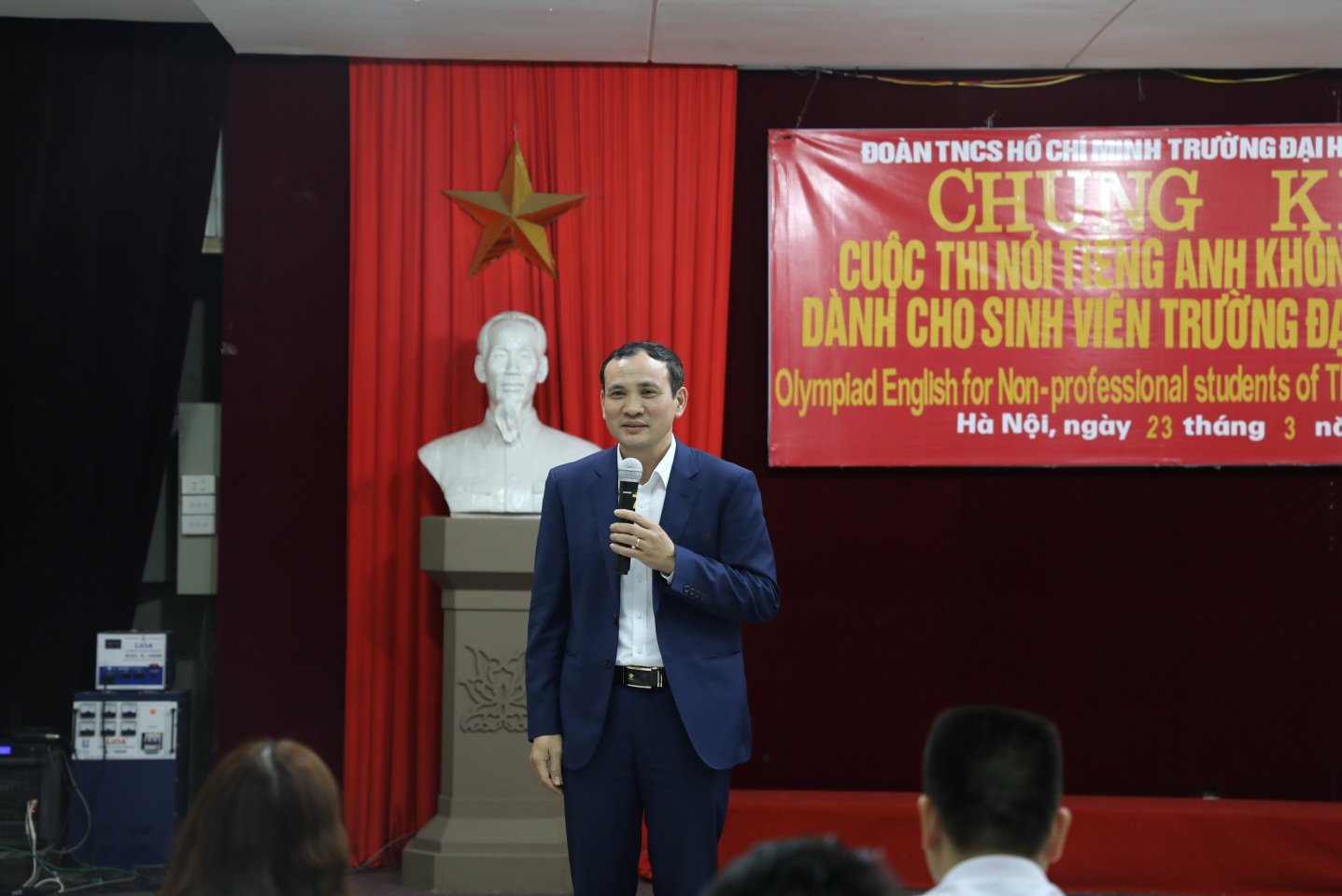 Tham dự đêm chung kết có GS. TS Nguyễn Trung Việt – Phó hiệu trưởng Nhà trường; TS Nguyễn Đình Trinh – Bí thư đoàn trường; đại diện ĐTN – HSV, bộ môn tiếng Anh cùng các bạn sinh viên toàn trường.