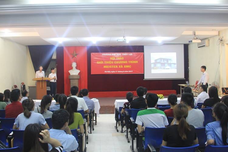 Để giúp các bạn sinh viên năm cuối hoặc mới tốt nghiệp của Trường Đại học Thủy lợi hiểu rõ hơn về Chương trình Meister School, sáng ngày 17/5/2017, “Hội thảo Giới thiệu về Chương trình Meister và GMC” được tổ chức tại Hội trường T35. Tại đây, cô Omi Chisa, Trưởng Dự án Meister School đã có một bài giới thiệu chi tiết về chương trình cùng những chia sẻ thẳng thắn về những ưu điểm và nhược điểm của Chương trình Meister School so với các chương trình tu nghiệp sinh khác.
