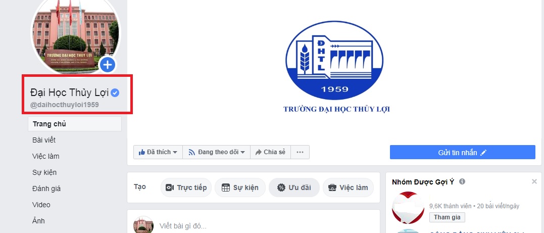 Fanpage Đại học Thủy lợi  được Facebook cấp chứng nhận Dấu tích xanh