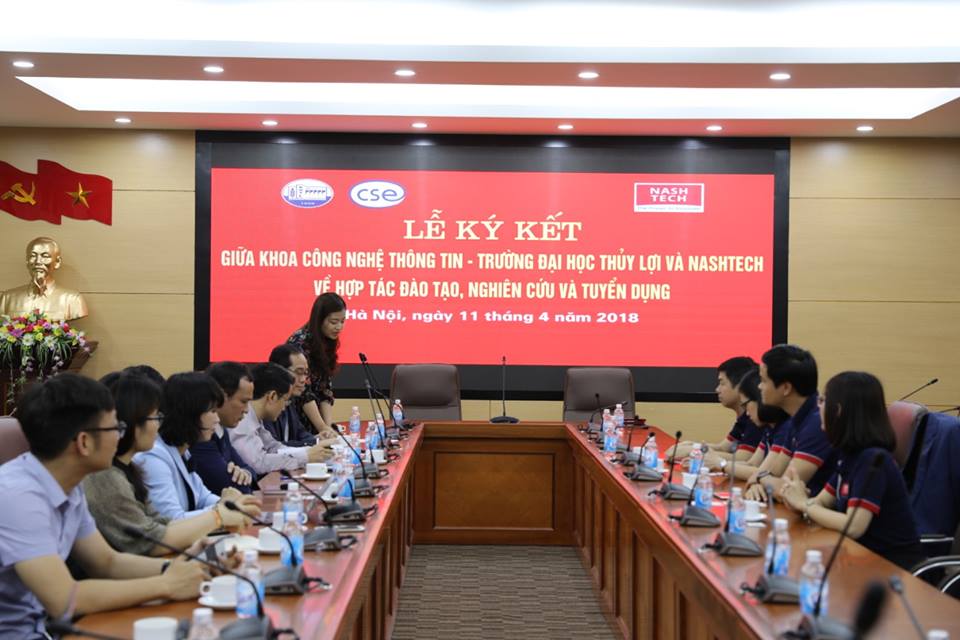 Phát biểu tại lễ ký kết, GS.TS. Nguyễn Trung Việt – Phó hiệu trưởng Nhà trường giới thiệu về Trường Đại học Thuỷ lợi và những chính sách quan trọng trong đào tạo, kết nối Nhà trường với doanh nghiệp, đồng thời cũng bày tỏ sự vui mừng về những thỏa thuận đạt được giữa hai bên và kỳ vọng sự hợp tác sẽ đem lại nhiều lợi ích cho sinh viên. GS. Việt nhận định, sự hợp tác hôm nay giữa Khoa CNTT và NashTech sẽ góp phần thúc đẩy mối quan hệ hợp tác trong việc đào tạo, nghiên cứu và chuyển giao công nghệ.