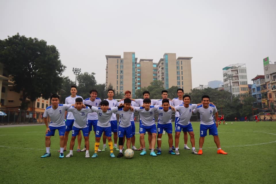Đội bóng liên quân khoa Biển và khoa Thủy văn tại sân vận động của trường
