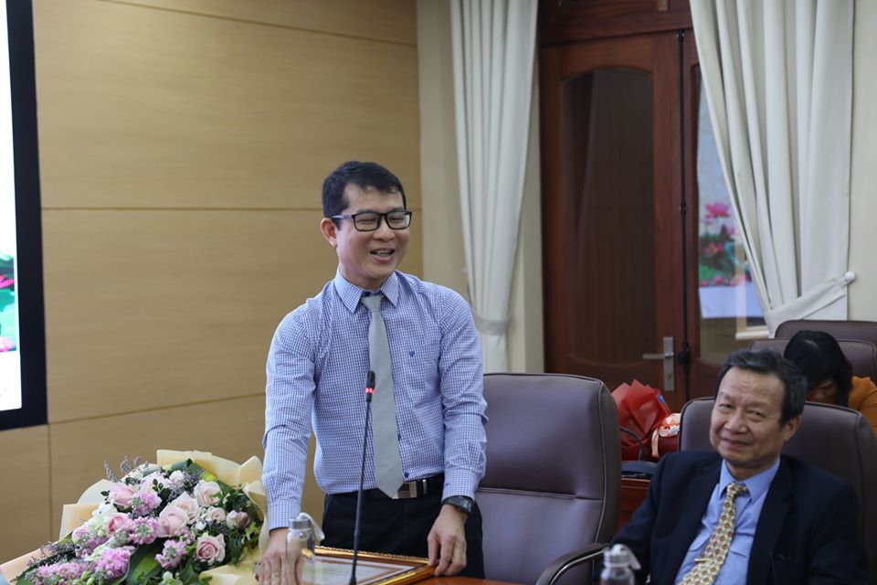Chia sẻ cảm xúc của bản thân trong lần vinh dự và rất đáng nhớ trong cuộc đời mình TS Nguyễn Hữu Thọ cho biết thầy rất may mắn được về công tác tại Trường Đại học Thủy lợi. Tại đây thầy có được môi trường tốt để làm việc, công hiến và tận tâm tận lực với sự nghiệp trồng người. Qua buổi hôm nay TS gửi lời cảm ơn đến lãnh đạo Nhà trường, Khoa Công nghệ thông tin, đồng nghiệp và sinh viên luôn sát cánh cùng Nhà trường, cùng bản thân thầy trong những thành công vừa qua.