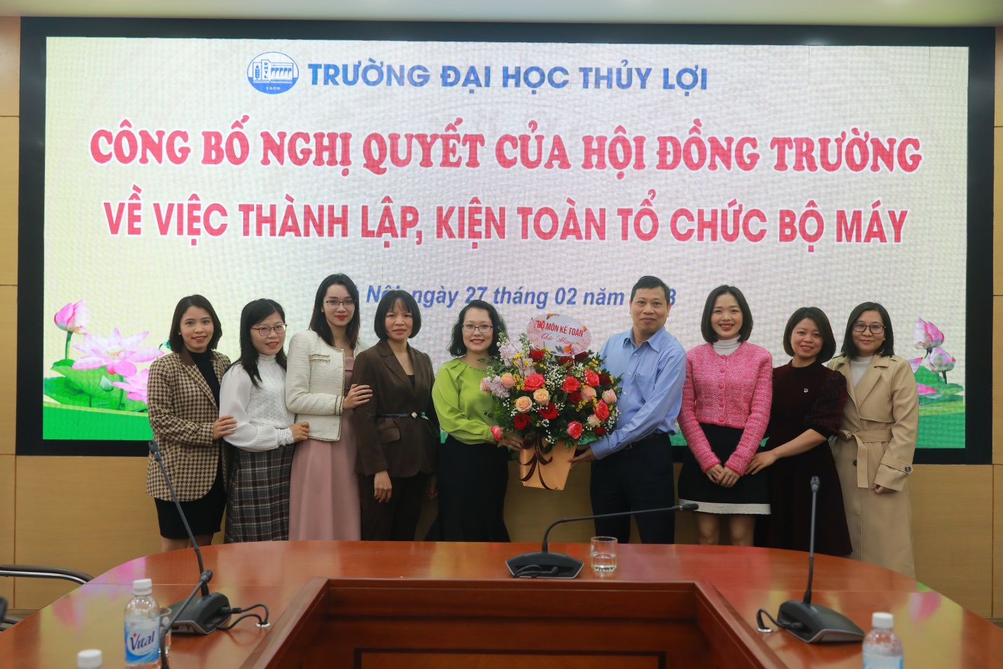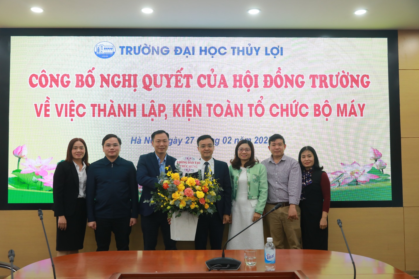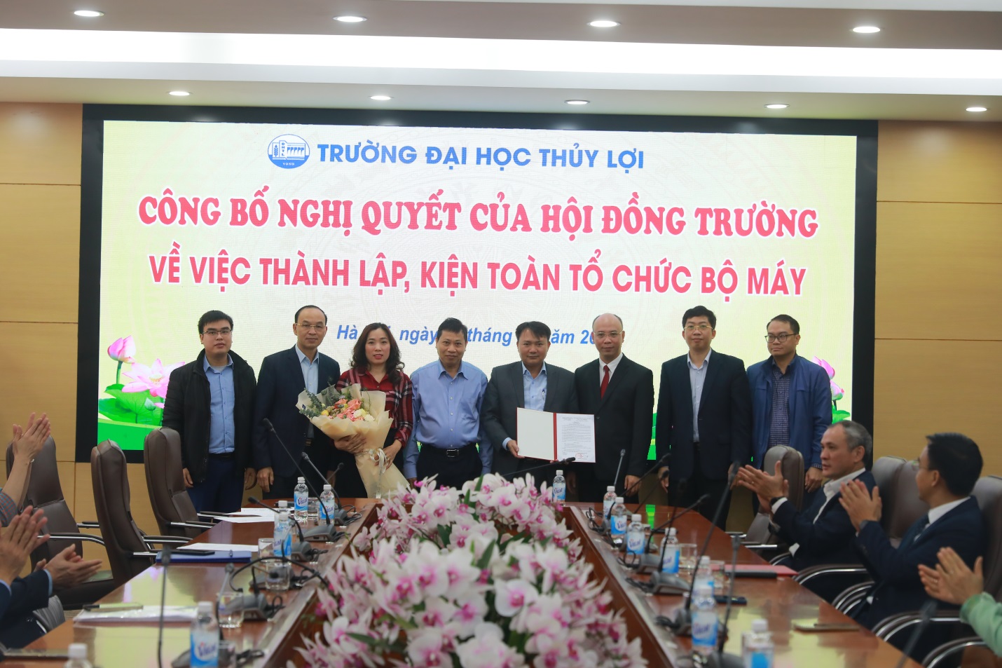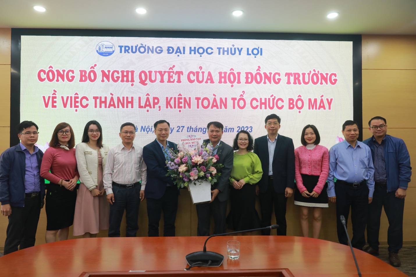 Chia sẻ và giao nhiệm vụ, Giáo sư – Hiệu trưởng Trịnh Minh Thụ nhấn mạnh, trong chiến lược phát triển, Trường Đại học Thủy lợi phấn đấu thành trường đại học đa ngành định hướng nghiên cứu và trong những năm qua việc chuyển đổi, đổi mới và sự phát triển mạnh mẽ của các khoa đến nay Trường Đại học Thủy lợi đã thành trường đại học đa ngành thực thụ với trên 70 ngành đào tạo, trong đó 40 ngành đào tạo bậc đại học, trên 20 ngành bậc cao học và 11 ngành trình độ tiến sĩ. Trong sự chuyển đổi đó, Nhà trường vinh dự được đón nhiều thầy cô giáo từ nhiều trường đại học, nhiều viện nghiên cứu về. Nhân dịp này, Giáo sư chúc mừng các Khoa, Bộ môn được kiện toàn, thành lập mới với vai trò, nhiệm vụ mới sẽ cùng với Nhà trường phát triển, chất lượng hiệu quả, mang lại thương hiệu uy tín trong các ngành nghề đào tạo.