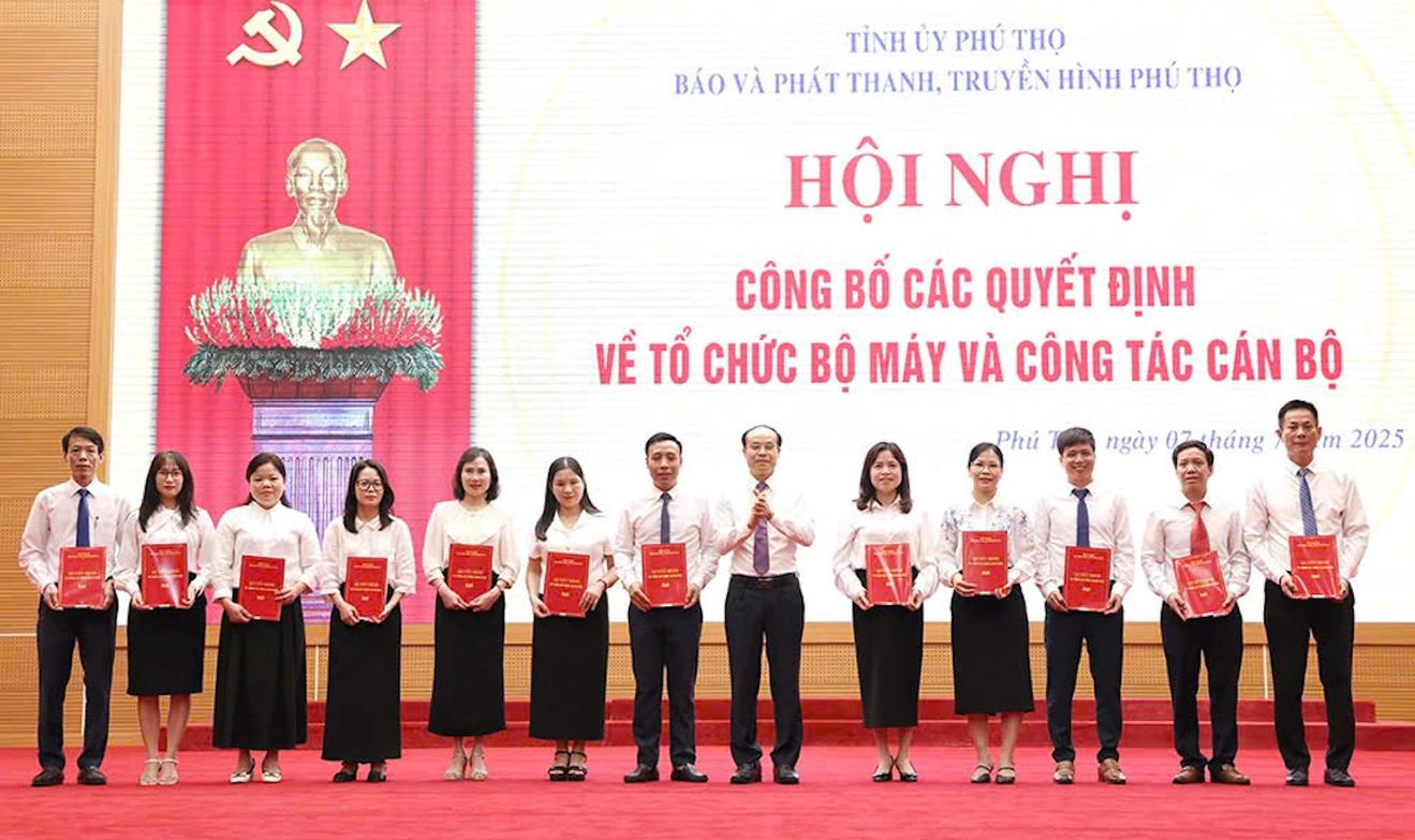 Hội nghị đã công bố Quyết định thành lập Báo và Phát thanh, truyền hình Phú Thọ. Theo đó, Báo và Phát thanh, truyền hình Phú Thọ là đơn vị sự nghiệp trực thuộc Tỉnh ủy Phú Thọ, được thành lập trên cơ sở sáp nhập Báo và Đài Phát thanh, truyền hình Phú Thọ, Báo Vĩnh Phúc, Báo Hòa Bình và chính thức đi vào hoạt động từ ngày 1/7/2025. Về tổ chức, Báo và Phát thanh, truyền hình Phú Thọ sẽ có Tổng Biên tập, các Phó Tổng Biên tập và 12 phòng chuyên môn.