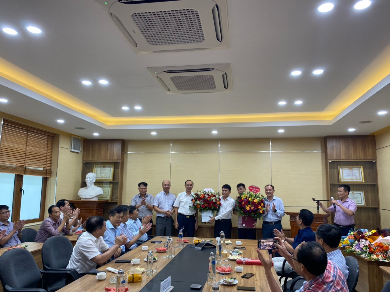 Lãnh đạo Trường Đại học Thủy lợi tặng hoa và chúc mừng Ông Lê Hồng Linh và ông Hà Đức Hạnh