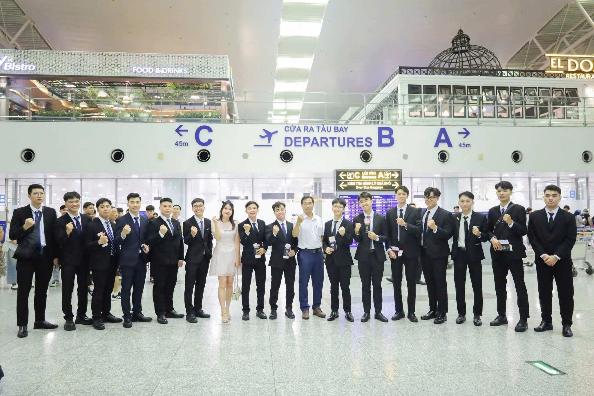 TS Nguyễn Ngọc Huyên – Phó Viện trưởng Viện IARTEP, kiêm Phó Trưởng khoa Cơ khí dẫn sinh viên làm thủ tục xuất cảnh tại sân bay