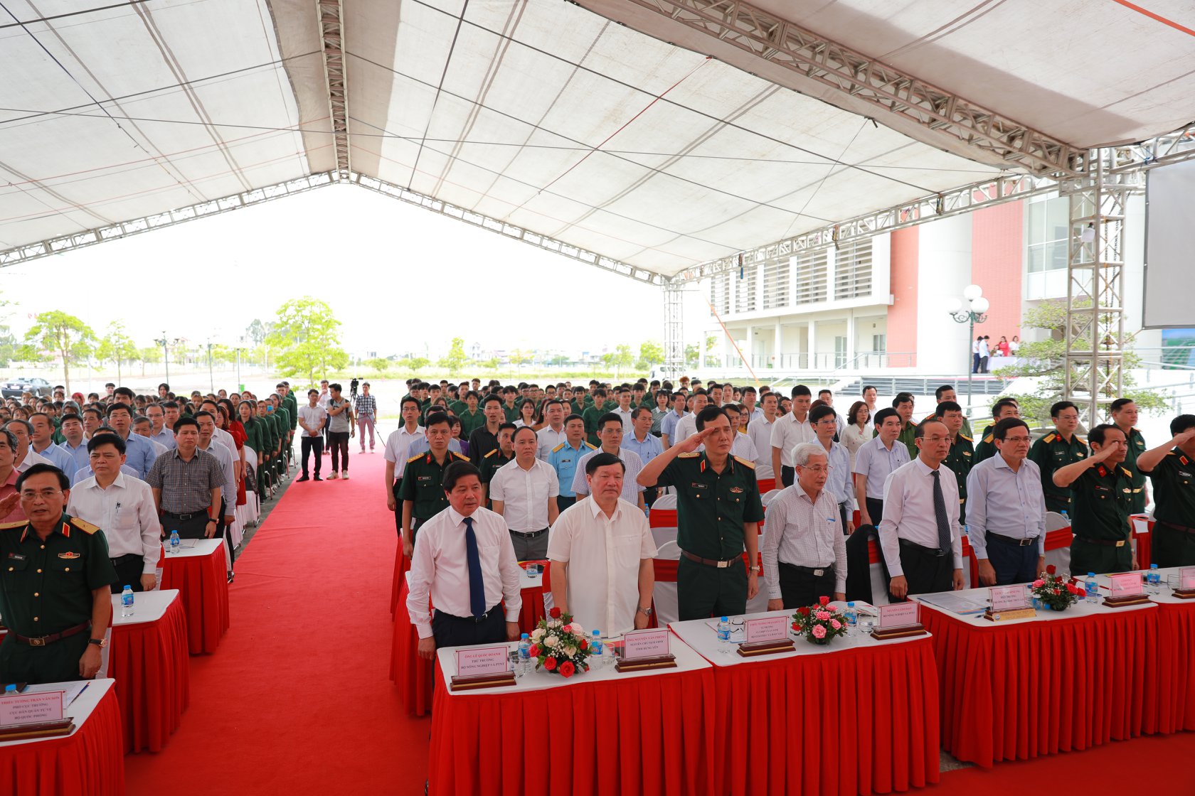 Đến dự cùng với buổi Lễ, Thiếu tướng Trần Văn Sơn – Phó Cục trưởng Cục Dân quân tự vệ, Bộ Tổng tham mưu, Bộ Quốc phòng phát biểu “Đây là Trung tâm GDQP&AN quốc gia. Trong cả nước hiện nay có tổng số 38 Trung tâm GDQP&AN quốc gia. Thay mặt Hội đồng Giáo dục quốc phòng an ninh Trung ương, tôi xin được chúc mừng Nhà trường. Chúng tôi rất mong lãnh đạo Bộ Nông nghiệp & PTNT, các Bộ, Ngành, Hội đồng GDQP&AN Quân khu 3, thành phố Hà Nội, tỉnh Hưng Yên tiếp tục quan tâm, lãnh đạo, chỉ đạo, hướng dẫn mọi thủ tục, tạo mọi điều kiện thuật lợi nhất để Trung tâm GDQP&AN Trường Đại học Thủy lợi hoàn thành xuất sắc nhiệm vụ được giao”.