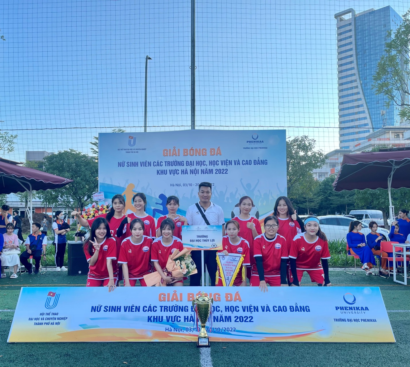 Tham gia “Giải bóng đá 7 người sinh viên Thành phố Hà Nội 2022 – Thiên khôi cup” vào tháng 8/2022, đội tuyển bóng đá trường đã phải tập luyện ròng rã trong suốt 2 tháng 7 và tháng 8. Giữa thời tiết hè oi ả và nóng bức, ban huấn luyện và các cầu thủ đã lên kế hoặc tập luyện vào các khung giờ thi đấu nắng nhất để rèn luyện khả năng chịu đựng của các cầu thủ, đồng thời, xây dựng nền tảng thể lực vững chắc mới có thể tham gia giải đấu mà không gặp bất kỳ chấn thương hay sự sa sút về thể lực nào. Ngoài ra, BHL cũng luôn sát sao đến chế độ dinh dưỡng của các cầu thủ bằng các bữa ăn tập trung sau mỗi buổi tập, nhắc nhở các cầu thủ phải tự sắp xếp kế hoạch ăn – tập – nghỉ ngơi cho riêng mình thì mới đáp ứng được yêu cầu khắt khe về tập luyện cũng như thi đấu. Và đúng như mong đợi, đội tuyển đã xuất sắc giành cup vô địch với các trận toàn thắng từ vòng bảng đến trận chung kết cuối cùng.