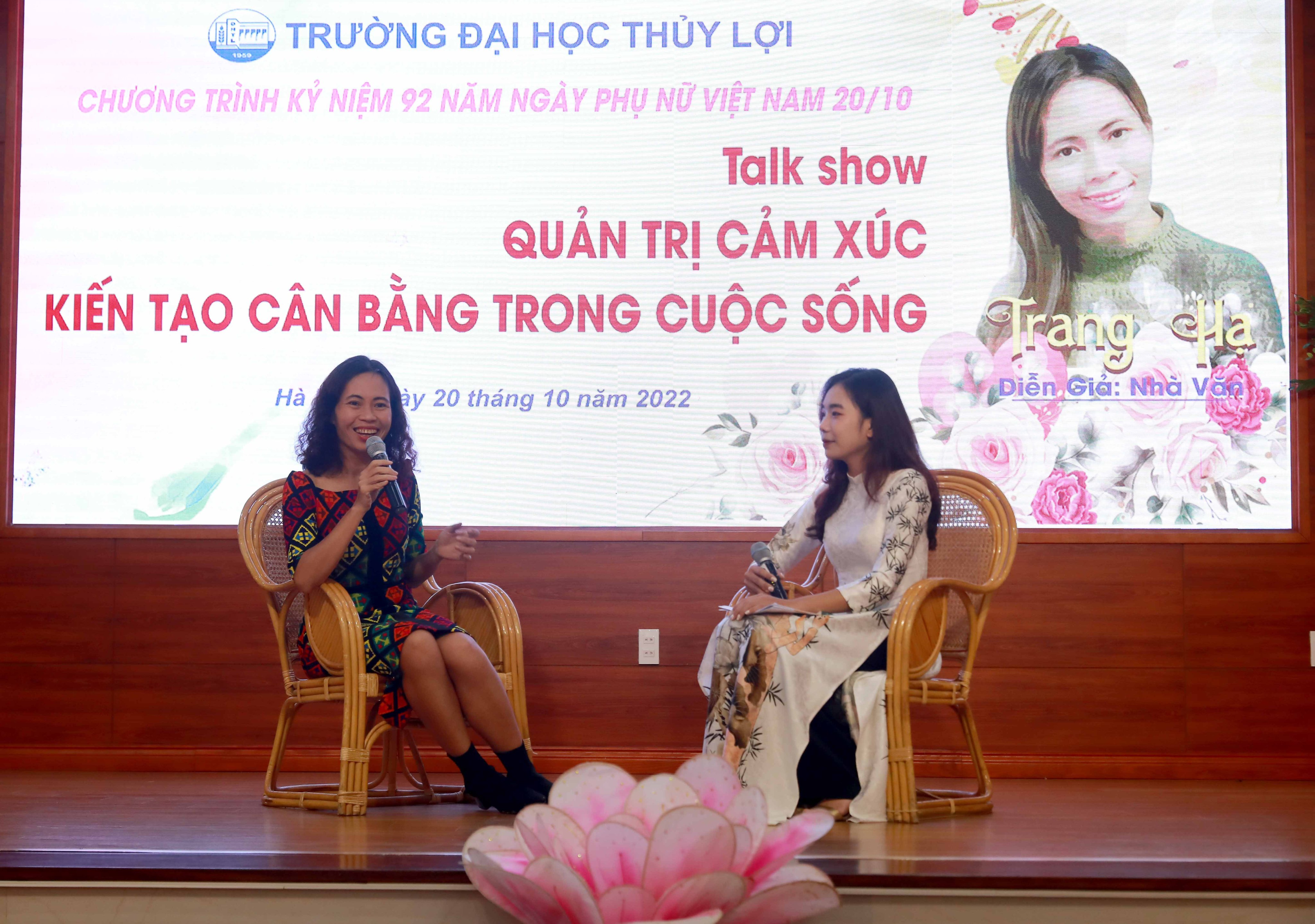 Khác với mọi năm, năm nay chương trình kỷ niệm 92 năm ngày thành lập Hội Liên hiệp Phụ nữ Việt Nam 20-10 có điểm nhấn mới qua phần talkshow “Quản trị cảm xúc, kiến tạo cân bằng trong cuộc sống” đến từ diễn giả, nhà văn Trang Hạ.