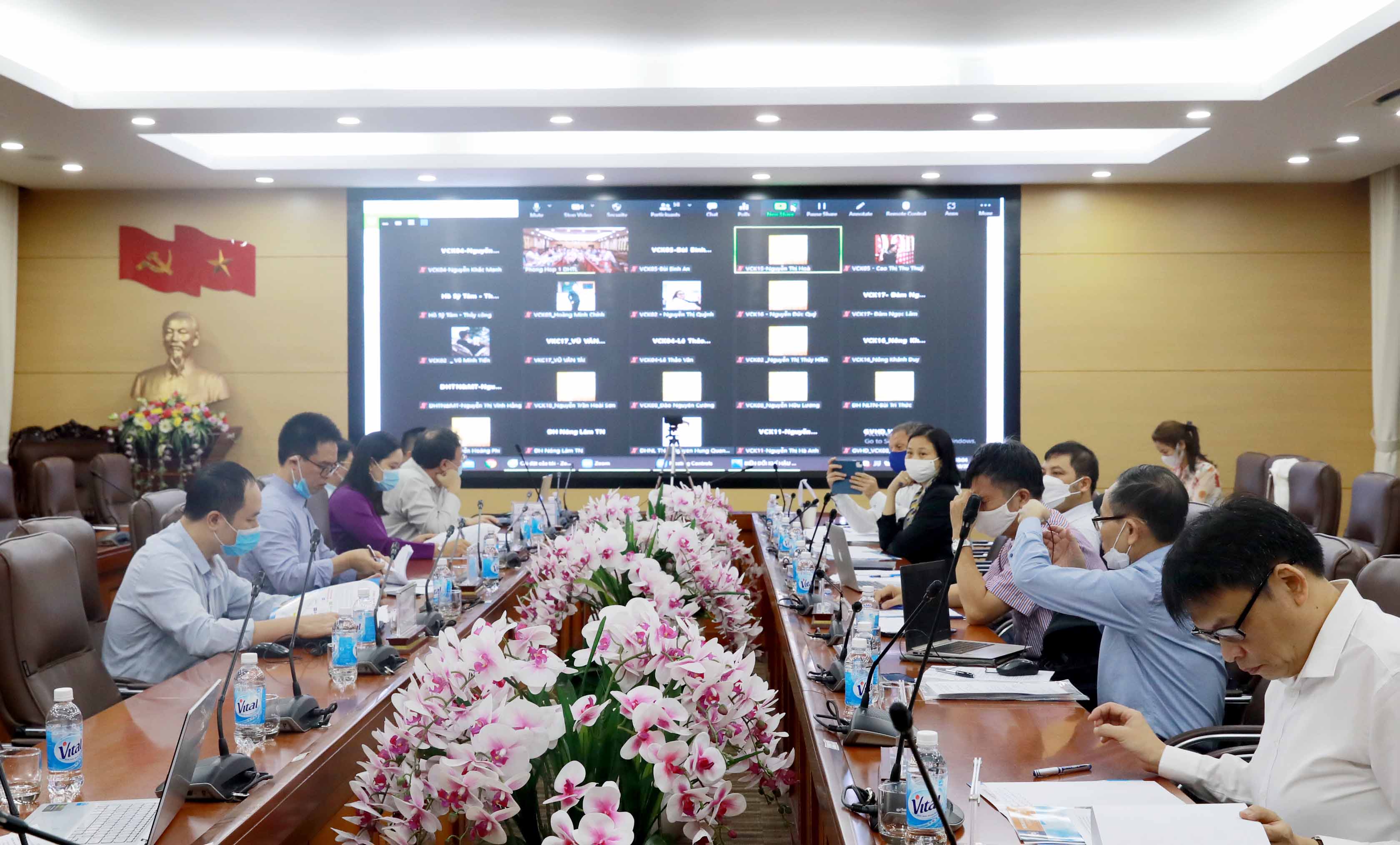 Các thành viên hội đồng lắng nghe và góp ý cho các đề tài dự thi