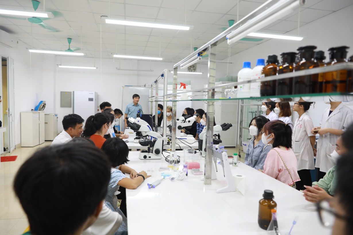 Buổi đầu tiên diễn ra vào sáng nay thu hút hàng chục học sinh từ Hà Nội, Bắc Ninh, Bắc Giang, Thái Nguyên đã đến với phòng thí nghiệm Công nghệ sinh học để tham gia sự kiện Open Biotech Lab. Đến tham gia sự kiện không chỉ có các thí sinh đang trong thời gian xét tuyển vào đại học mà còn có các em học sinh lớp 9, lớp 10 đến tìm hiểu về ngành học và môi trường học tập.