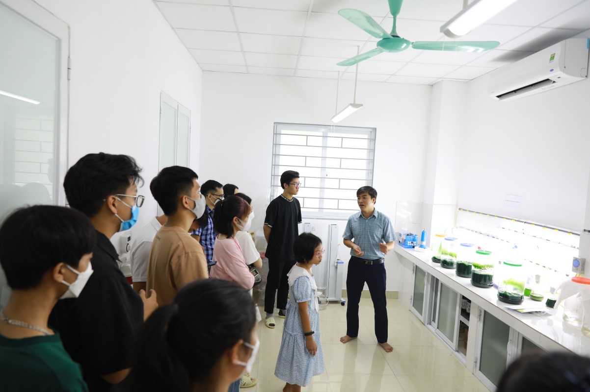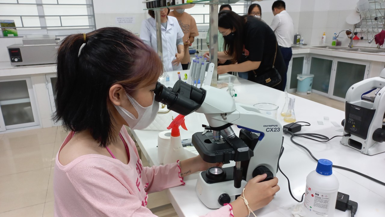 Tại đây, các bạn học sinh được các thầy cô ngành Công nghệ sinh học dẫn đi tham quan các phòng thí nghiệm, hướng dẫn sử dụng các dụng cụ, máy móc thí nghiệm và giải thích cụ thể công dụng, quy trình của từng loại máy móc, dụng cụ thực hành. Đặc biệt, các em còn được trực tiếp làm thử một số thí nghiệm ngay tại phòng thí nghiệm.