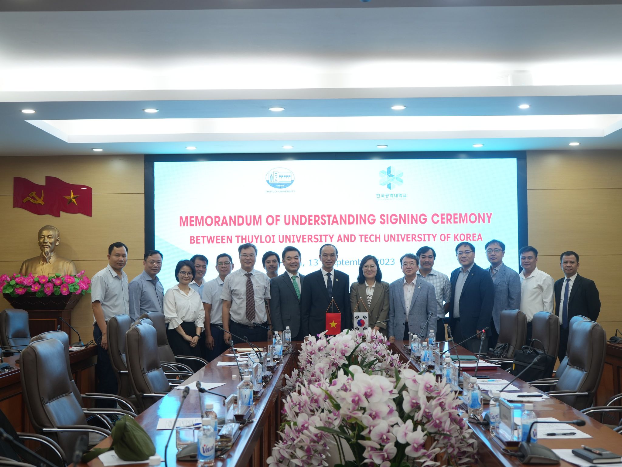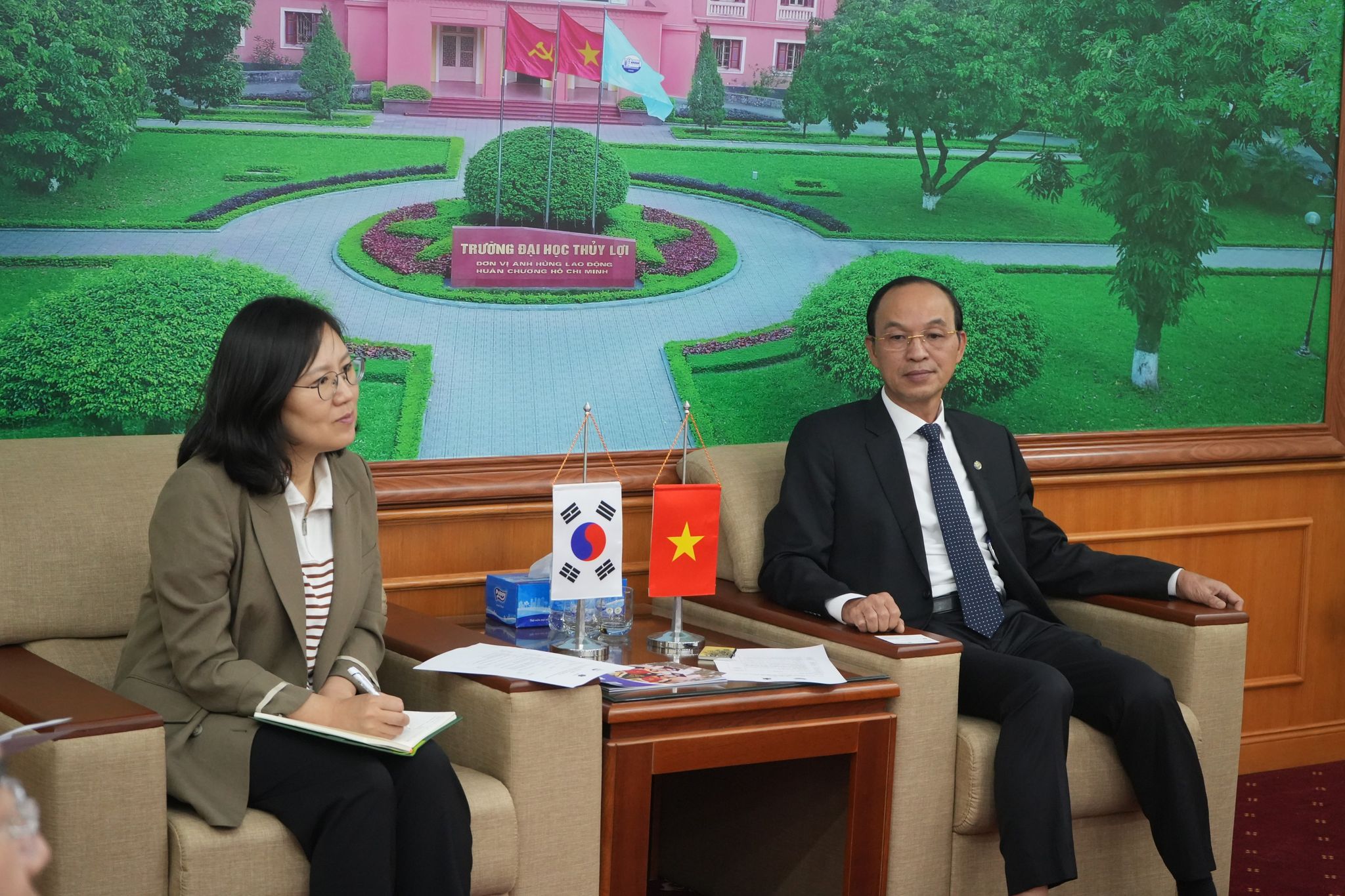 GS. TS Trịnh Minh Thụ phát biểu cảm ơn các bên đã tích cực trao đổi hợp tác đào tạo trong khuôn khổ nội dung MOU đã được kí kết. Hiệu trưởng cũng khẳng định, với kinh nghiệm nhiều năm hợp tác trong đào tạo và nghiên cứu khoa học với nhiều quốc gia nói chung và Hàn Quốc nói riêng, Nhà trường sẽ tiếp tục mở rộng quan hệ hợp tác với các đối tác mới, triển khai các hình thức hợp tác mới trong nhiều ngành mới nhằm đem lại hiệu quả cao nhất tới đội ngũ giảng viên, cán bộ và sinh viên của trường, từ đó nâng tầm và khẳng định hơn nữa vị thế và thương hiệu Trường Đại học Thủy lợi ở trong nước, khu vực và quốc tế.