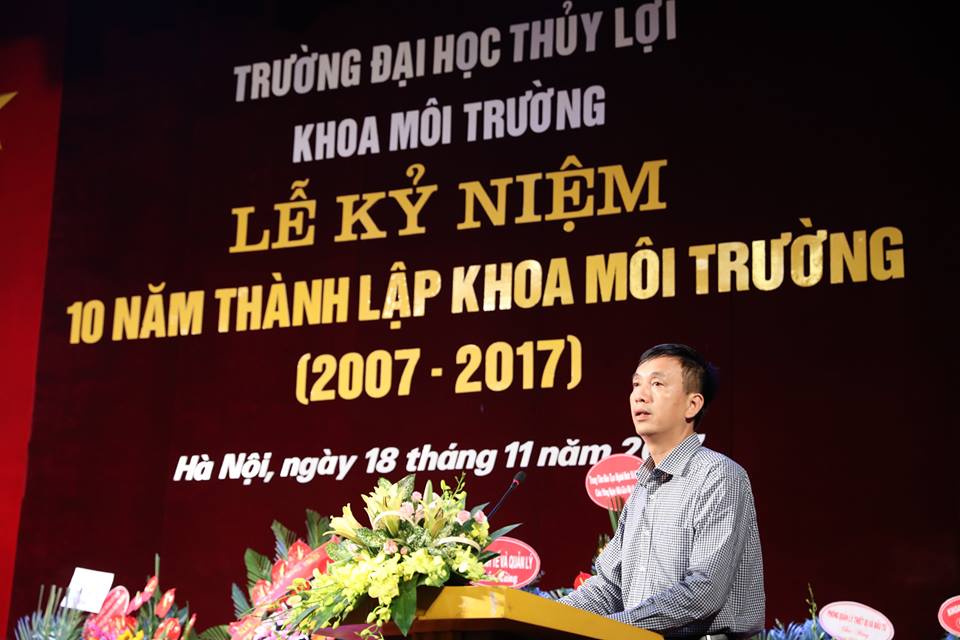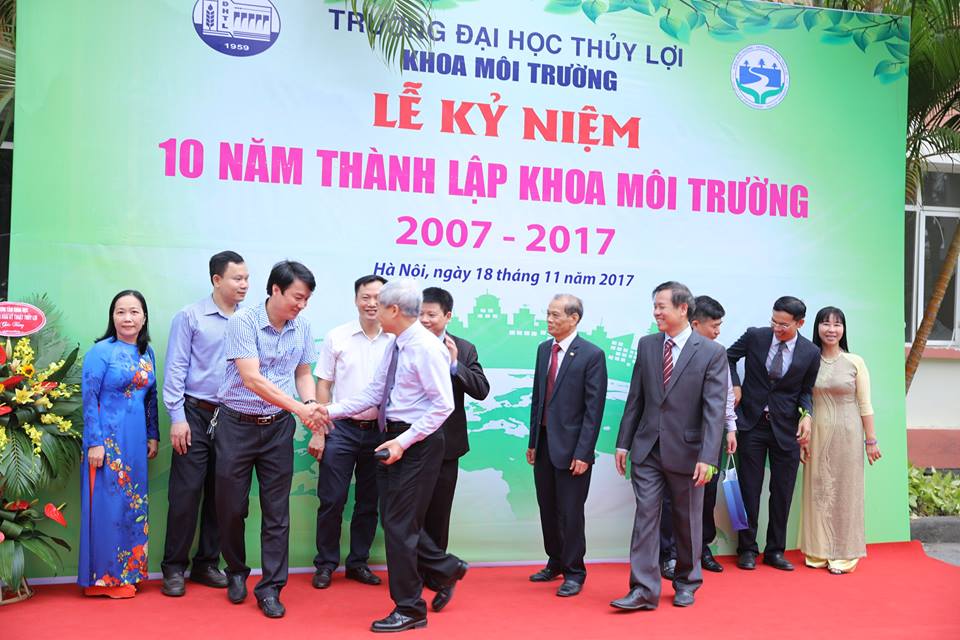 Trong lễ kỷ niệm ngày hôm nay 18/11/2017 khoa Môi trường rất vinh dự được đón tiếp rất nhiều quý vị khách quý đến chung vui với thầy trò trong khoa. GS.TS Vũ Trọng Hồng – Nguyên thứ trưởng Bộ NN&PTNN; GS.TS Đào Xuân Học – Nguyên thứ trưởng Bộ NN&PTNN; GS.TSKH Đặng Ứng Vận – Chủ tịch Hội đồng chức danh liên ngành Hóa và Công nghệ thực phẩm; PGS.TS Lê Thị Kim Cúc – Vụ trưởng Vụ Khoa học công nghệ, Hợp tác quốc tế, Tổng cục thủy lợi; Ông Hoàng Văn Vi – Phó Cục trưởng cục kiểm soát hoạt động môi trưởng, Tổng cục môi trường; Ông Dương Văn Bá – Phó Vụ trưởng Vụ giáo dục chính trị và Công tác học sinh sinh viên – Bộ Giáo dục và Đào tạo. Đại diện các trường đại học Bách khoa, Xây dựng, Tài nguyên môi trường, Khoa học tự nhiên Học viện Nông nghiệp Việt Nam, Đại học Mỏ địa chất. ĐH Sư Phạm Hà Nội 1, ĐH Khoa học và Công nghệ, ĐH Công nghiệp, ĐH Giao thông vận tải, ĐH Sư phạm kỹ thuật Hưng Yên, ĐH Công đoàn, ĐH Đông đô, ĐH Phương đông. Đại diện Viện hàn lâm khoa học và công nghệ Việt Nam, Viện Khoa học Thủy lợi Việt Nam, Viện Khoa học và công nghệ Môi trường Việt Nam, Viện Môi trường nông nghiệp Bộ NN&PTNT Viện Khoa học và Công nghệ quân sự, Viện Khoa học công nghệ và môi trường ĐH Bách Khoa, Trung tâm nghiên cứu môi trường Bộ tài nguyên môi trường, đại diện công ty môi trường Hà Nội, công ty khai thác và xử lý nước thải Bắc Ninh và đơn vị đối tác. Về phía Trường Đại học Thủy lợi có GS. TS Nguyễn Quang Kim – Bí thư Đảng ủy, Hiệu trưởng Nhà trường; đại diện Đảng ủy, Ban giám hiệu, Hội đồng trường, Công đoàn, đoàn thanh niên, các phòng, khoa ban, trung tâm, các thầy cô nguyên là lãnh đạo, nguyên là cán bộ, nguyên là giảng viên và toàn thể cán bộ, giảng viên sinh viên, cựu sinh viên, cựu học viên của Khoa Môi trường.
