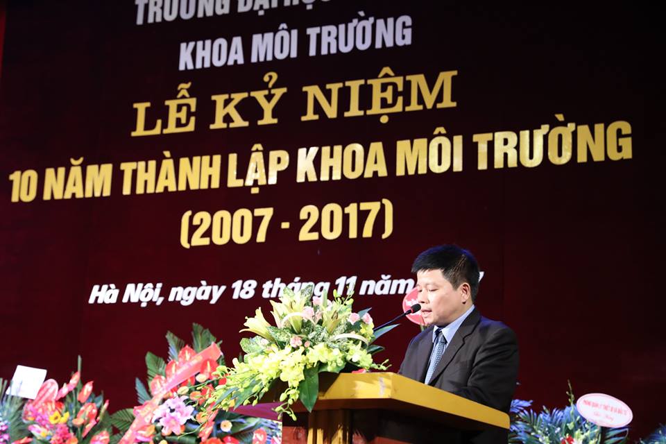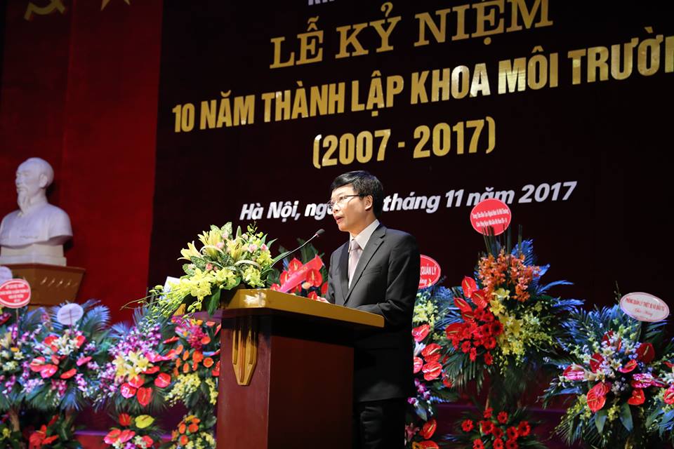 PGS.TS Bùi Quốc Lập – Trưởng khoa Môi trường trình bày báo cáo tại buổi lễ