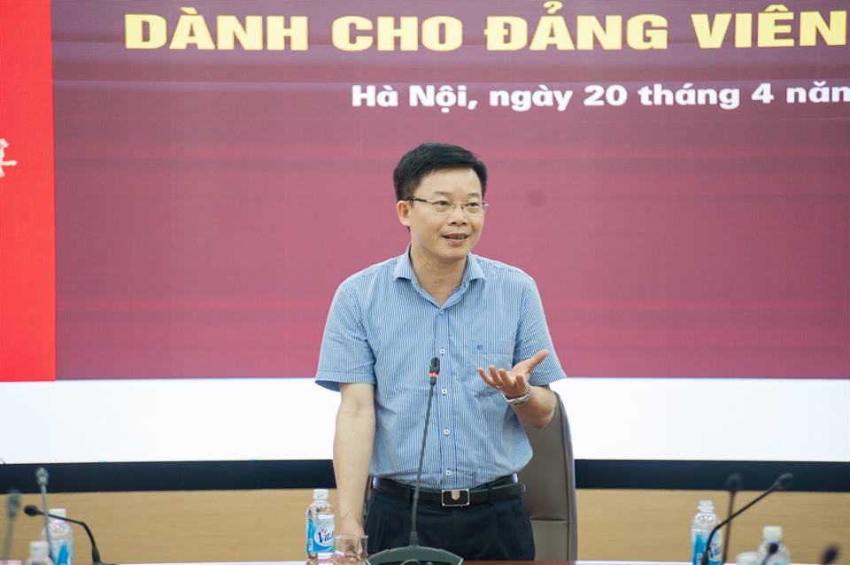 Đ/c Nguyễn Quang Kim, UVTV Đảng ủy Khối, Bí thư Đảng ủy Trường Đại học Thủy lợi phát biểu khai mạc khóa học