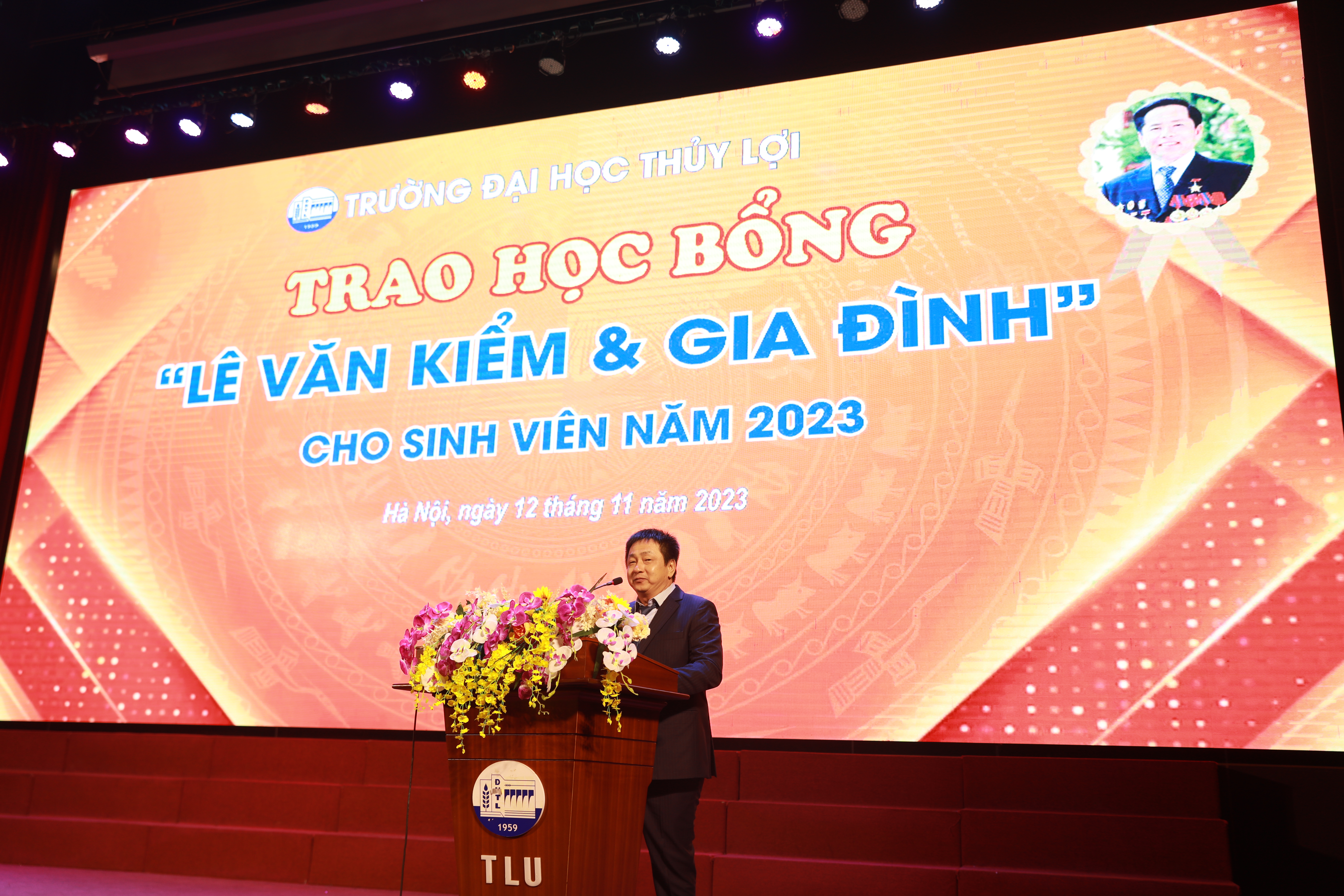 Là năm thứ 4 liên tiếp đại diện gia đình đến dự và trao học bổng “Lê Văn Kiểm và gia đình” cho sinh viên Trường Đại học Thủy lợi, Ông Lê Huy Hoàng – Thành viên HĐQT Công ty Cổ phần Đầu tư và Kinh doanh Golf Long Thành, con trai Cựu sinh viên khóa 6, Anh hùng lao động Lê Văn Kiểm cho biết: Gia đình rất vui vì Trường Đại học Thủy lợi đã vận hành hiệu quả nguồn Quỹ trong nhiều năm qua. Quỹ học bổng không chỉ là nguồn động viên về vật chất mà còn về tinh thần, giúp cho nhiều sinh viên ổn định cuộc sống, tập trung học tập và nghiên cứu khoa học… Ông khẳng định, đây không chỉ là tâm niệm của cha mình mà còn là tâm niệm của gia đình trong các hoạt động xã hội, thiện nguyện vì cộng đồng.