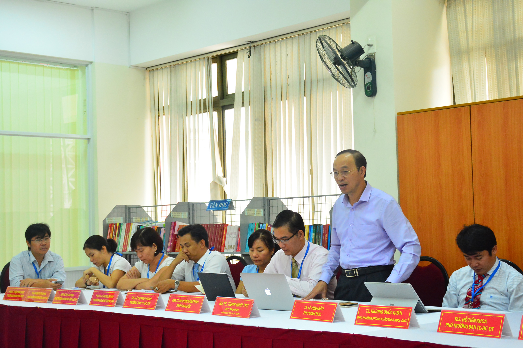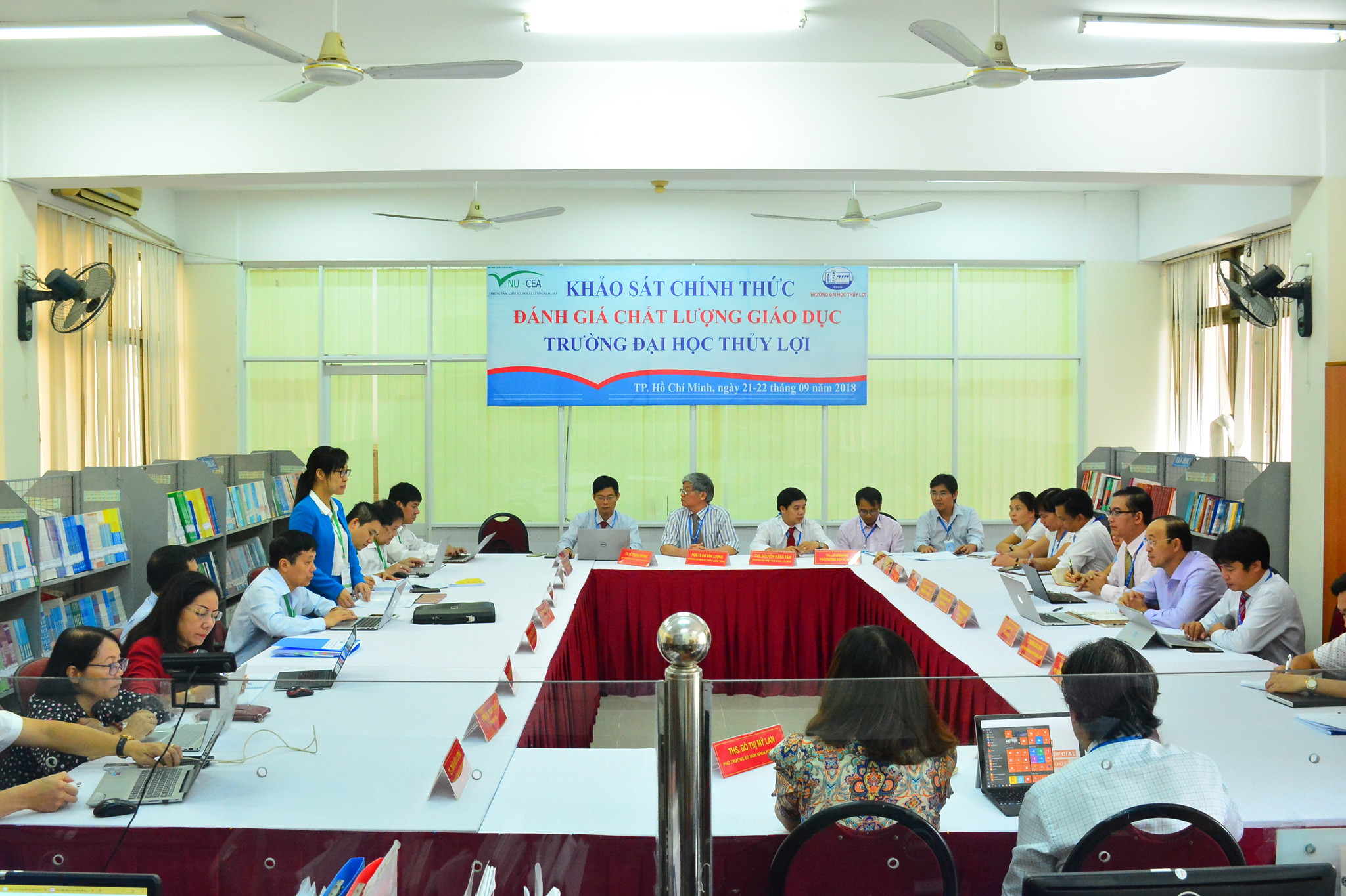 Trong hai ngày 21&22/9/2018, tại cơ sở II – Trường Đại học Thủy lợi, Đoàn chuyên gia đã tiến hành gặp gỡ, làm việc với các cán bộ chủ chốt; nghiên cứu hồ sơ minh chứng và làm việc trực tiếp với cán bộ phụ trách các mảng: Hành chính quản trị, Đào tạo và Công tác sinh viên, Khoa học công nghệ và Hợp tác quốc tế, Khảo thí và Đảm bảo chất lượng, Tài vụ, Thư viện …