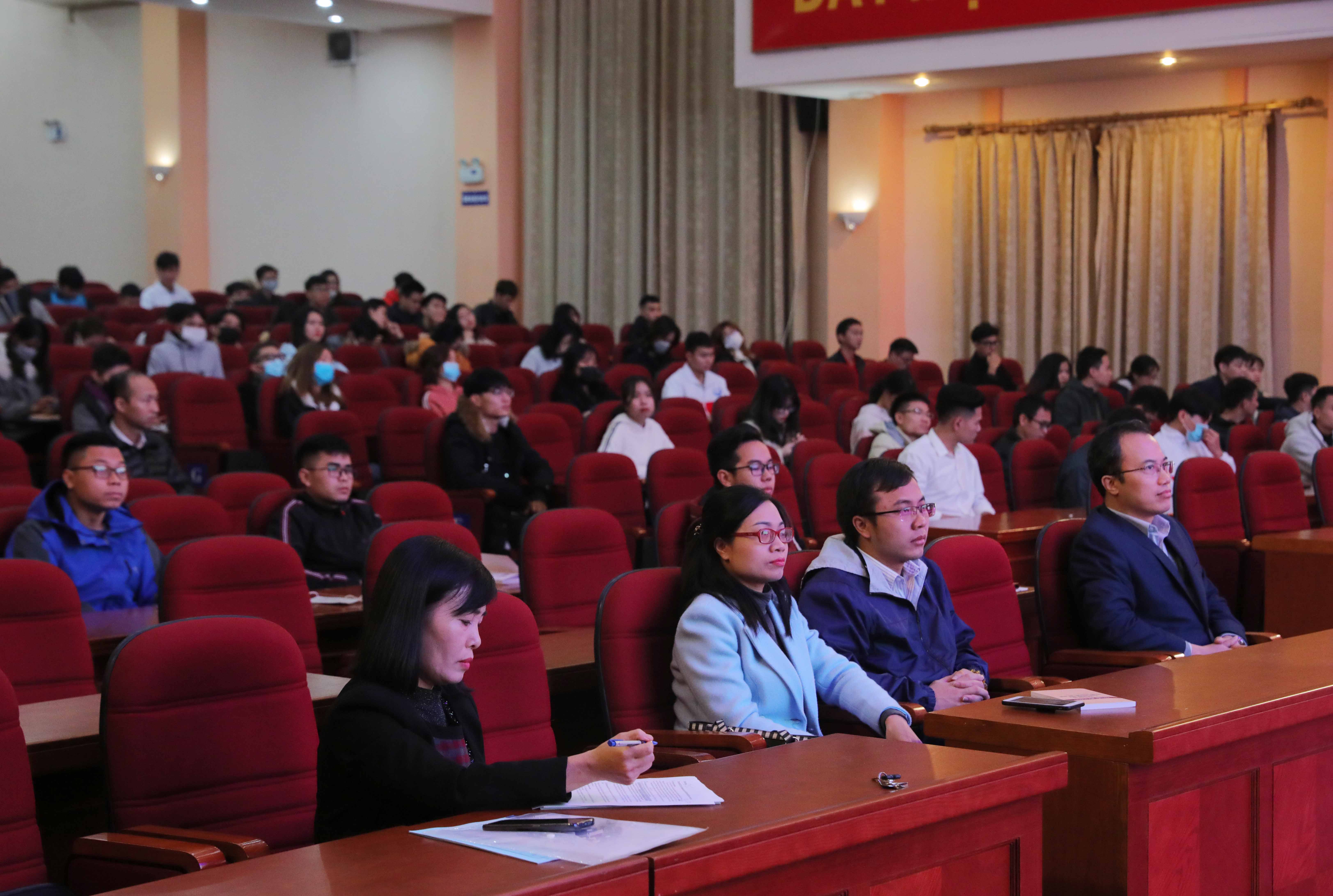 Lớp học diễn ra tại Hội trường T45, đả, bảo giữ khoảng cách vị trí ngồi để phòng, chống Covid 19