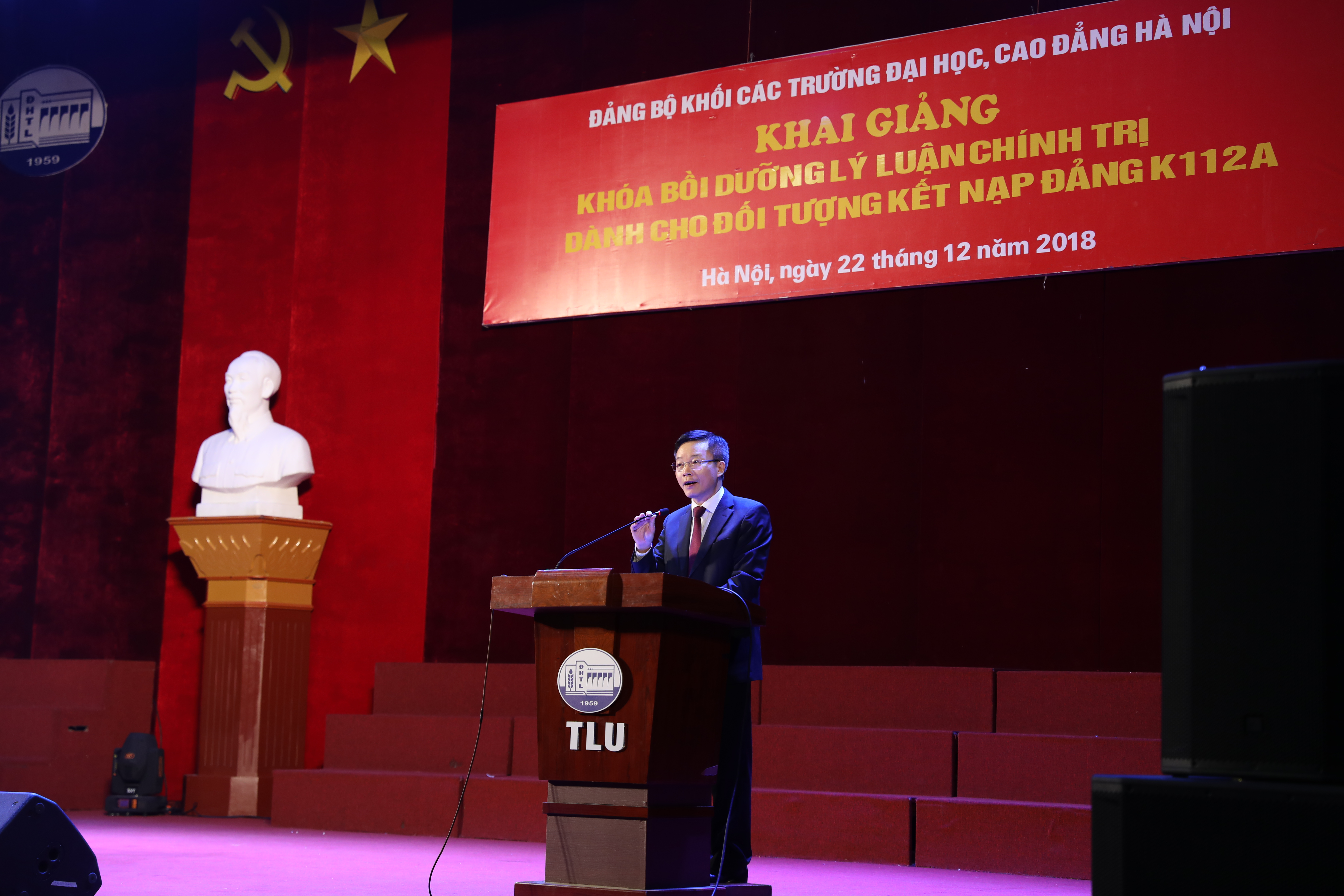 Phát biểu khai mạc lớp học, GS.TS Nguyễn Quang Kim – Bí thư Đảng ủy – Chủ tịch Hồi đồng trường – Ủy viên thường vụ Đảng bộ khối các trường đại học, cao đẳng Hà Nội đã nhấn mạnh tầm quan trọng, ý nghĩa của lớp học; định hướng những nhiệm vụ của người học viên trong việc học tập, rèn luyện, tu dưỡng để có thể chính thức trở thành đảng viên của Đảng Cộng sản Việt Nam.