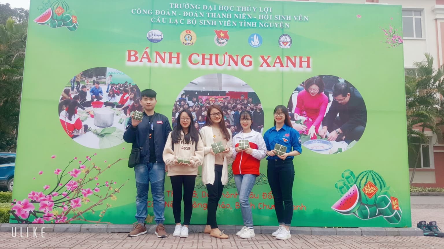 Các thành viên lớp tham gia gói bánh chưng xanh mừng xuân 2019