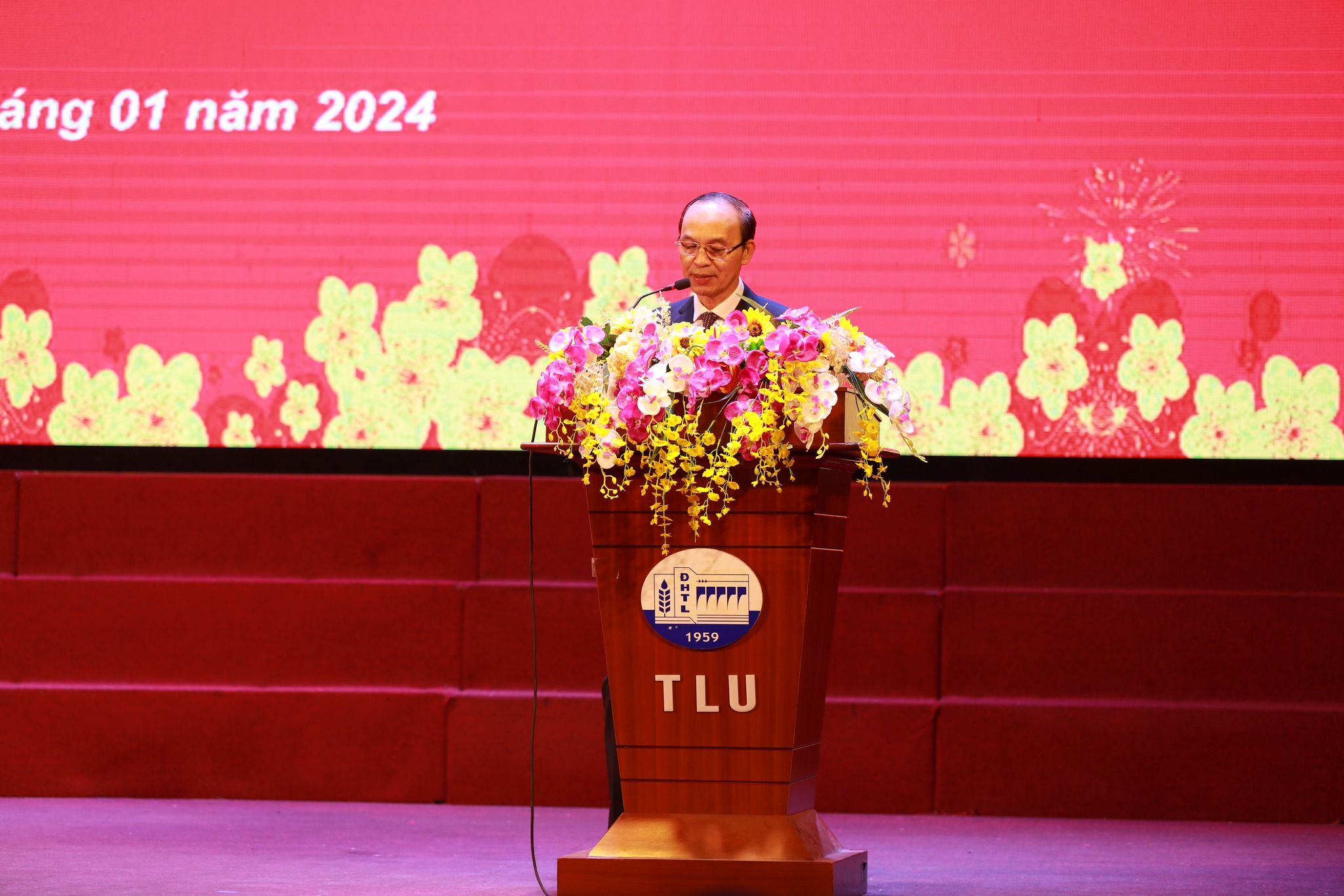 Thay mặt lãnh đạo Trường Đại học Thủy lợi, Giáo sư Trịnh Minh Thụ cũng chia sẻ với các cán bộ hưu trí về một số thành tích nổi bật đã đạt được của Trường trong năm 2023. Theo đó, trong năm 2023, Trường có tổng số các ngành đào tạo của trường ở các bậc hệ lên tới hơn 70 ngành. Quy mô tuyển sinh hơn 24 nghìn sinh viên đại học và sau đại học. Số lượng cán bộ, giảng viên là hơn 1.200 viên chức, trong đó tỷ lệ giảng viên có trình độ tiến sĩ trở lên đạt gần 60%; có khả năng ngoại ngữ tốt.