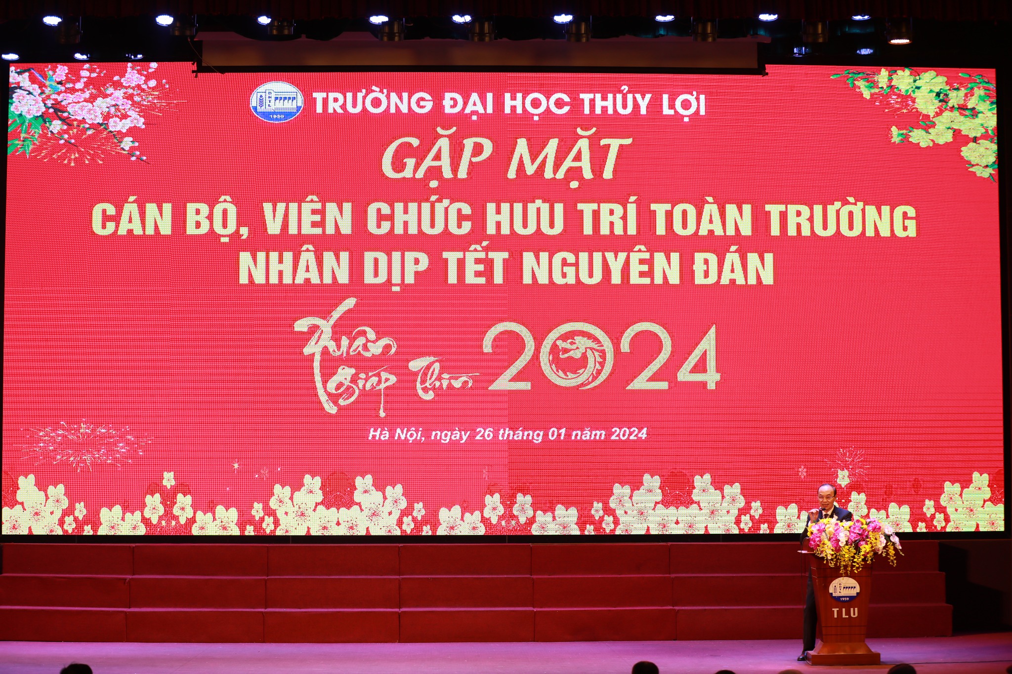 Giáo sư Trịnh Minh Thụ khẳng định, bước sang năm 2024, năm chào đón 65 năm Ngày thành lập Trường Đại học Thủy lợi, bên cạnh những thuận lợi, Nhà trường cũng phải đối mặt với nhiều thách thức trong tự chủ, trong quản trị đại học…Song, Hiệu trưởng tin rằng, sự quan tâm, theo dõi, chia sẻ, ủng hộ của các nhà giáo lão thành và cán bộ hưu trí sẽ góp phần xây dựng Nhà trường ngày càng phát triển, lập nhiều thành tích chào đón sự kiện lớn của Nhà trường.