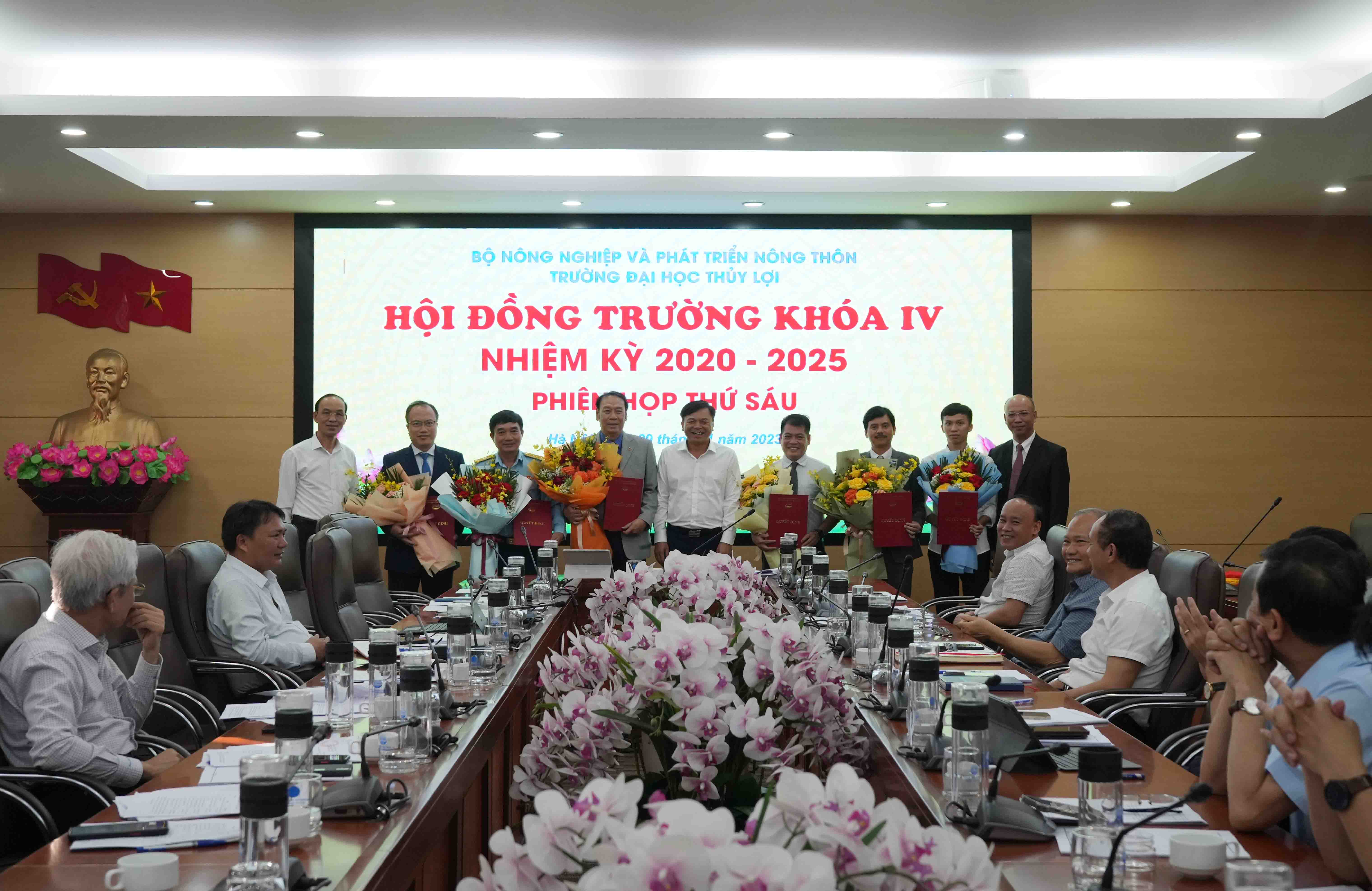 Dịp này, Thứ trưởng Bộ Nông nghiệp và PTNT Nguyễn Hoàng Hiệp cũng đại diện Bộ trao các Quyết định công nhận, bổ sung thành viên Hội đồng trường Trường Đại học Thủy lợi khóa IV, nhiệm kỳ 2020-2025; gồm: (1) Ông Nguyễn Nhất Tùng – Trưởng Khoa Điện-Điện tử, (2) Ông Nguyễn Ngọc Thắng – Trưởng Khoa Công trình kiêm Viện trưởng Viện Kỹ thuật Công trình, (3) Ông Hồ Sỹ Tâm – Trưởng Phòng Khoa học Công nghệ và Hợp tác Quốc tế, (4) Sinh viên Trần Tuấn Minh – lớp 63CNTT4 – Ủy viên Ban chấp hành Đoàn TNCSHCM, (5) Ông Nguyễn Văn Đính – Nguyên Hiệu trưởng Trường Đại học Hà Tĩnh, (6) Ông Nguyễn Mai Đô – Chủ tịch Tổng Công ty xây dựng Công trình hàng không ACC, Quân chủng Phòng không không quân, Bộ Quốc phòng.