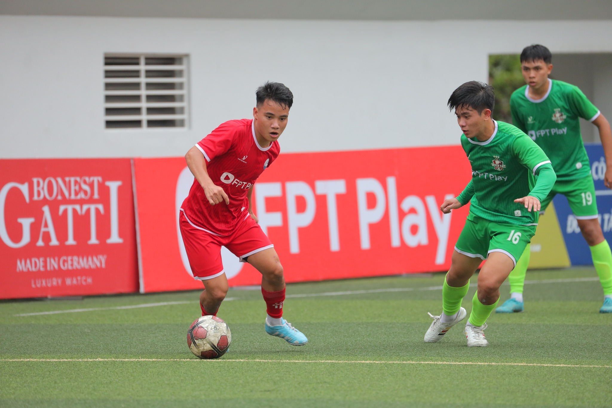 Với lối đá chắc chắn và những đường lên bóng có nét, đa dạng biến hóa đã tạo ra vô số cơ hội ngon ăn. Phải chờ đến phút thứ 17 tiền đạo Văn Dũng (số 9) bên phía Đại học Thủy lợi đã có pha xử lý khéo léo đưa bóng vào lưới đội ĐH Tôn Đức Thắng giúp Đại học Thủy lợi dẫn trước 1-0.