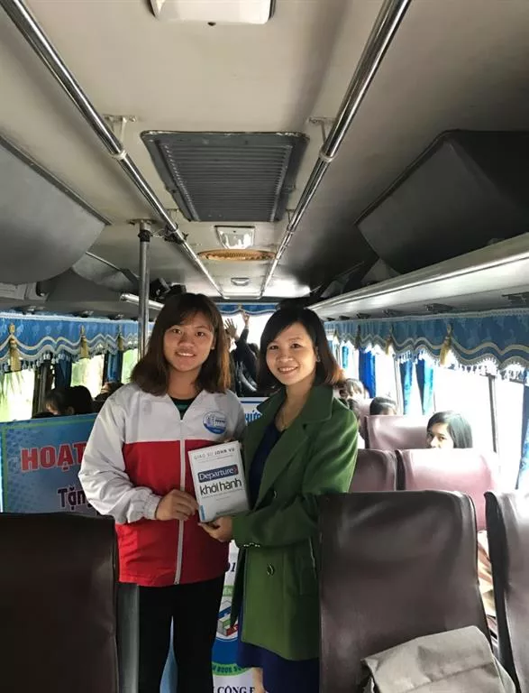 Sự thực thì không có gì đáng lo ngại cả. Cơ sở mở rộng trường thực sự khang trang và rộng rãi, tiện nghi đầy đủ. Ngoài sự quan tâm của nhà trường dành cho K58, thì Tủ sách Kiến Thức Xanh cũng có những hoạt động ý nghĩa để cùng các em vững bước. Thời gian vừa qua, Tủ sách Kiến Thức Xanh đã có chương trình tặng sách cho các lớp K58 khi cùng các bạn đi thăm cơ sở Phố Hiến của nhà trường. Đại diện Tủ sách tặng sách cho sinh viên trên chuyến xe thăm...