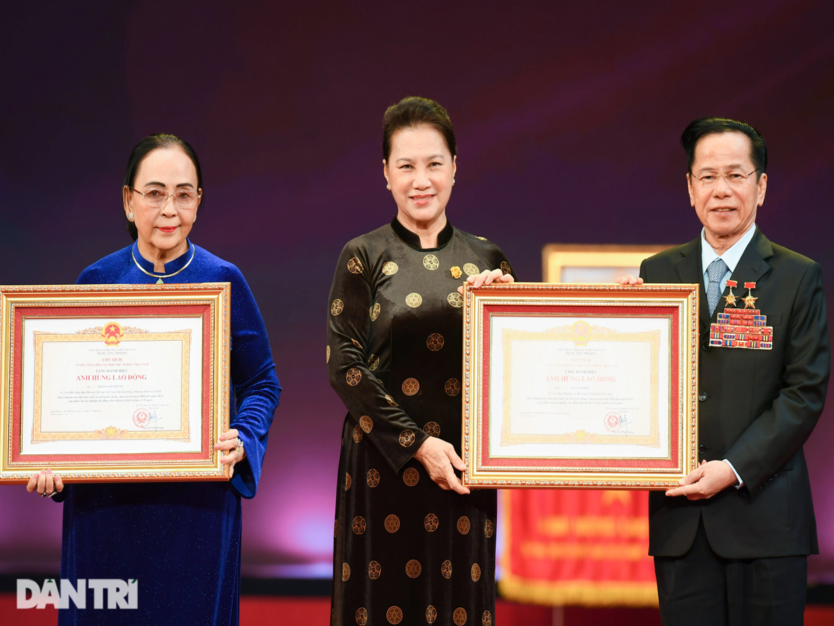 Chủ tịch Quốc hội Nguyễn Thị Kim Ngân trao tặng danh hiệu Anh hùng lao động thời kỳ đổi mới cho vợ chồng ông Lê Văn Kiểm, bà Trần Cẩm Nhung