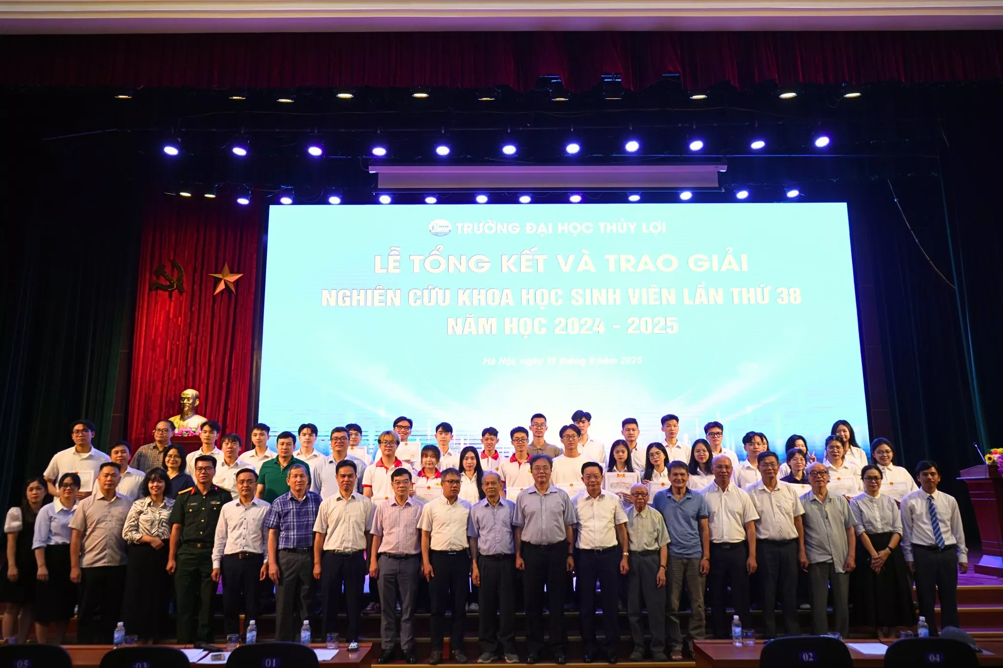 Sáng nay, Lễ tổng kết và trao giải Nghiên cứu khoa học sinh viên lần thứ 38 đã được Trường Đại học Thủy lợi tổ chức long trọng tại Hội trường T45. Tham dự buổi lễ có đại diện các trường thuộc Câu lạc bộ các trường đại học kỹ thuật. Về phía Trường Đại học Thủy lợi có PGS.TS Nguyễn Hữu Huế – Bí thư Đảng ủy – Chủ tịch Hội đồng trường; PGS.TS Nguyễn Cảnh Thái – Phó Hiệu trưởng cùng đại diện các Phòng, Khoa, Trung tâm, các thầy cô hướng dẫn và sinh viên tham gia...