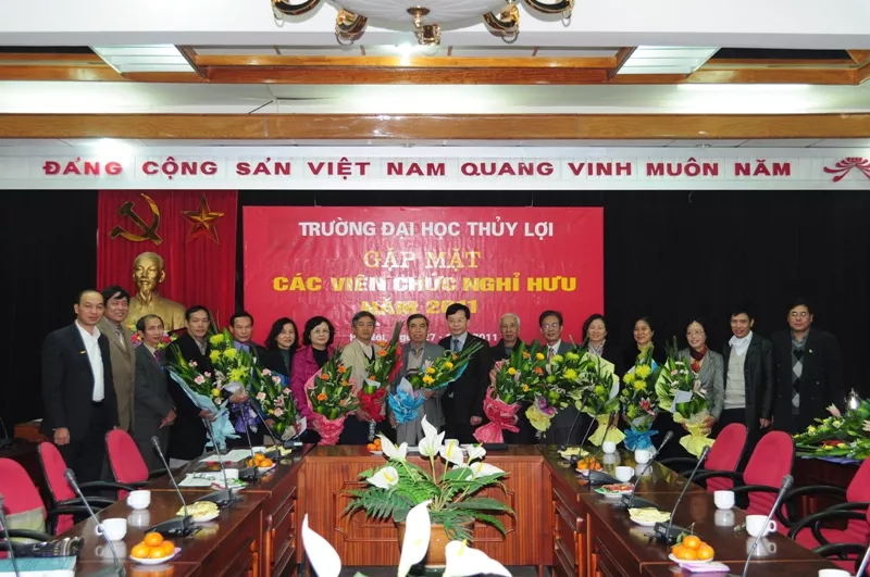 Theo thông lệ vào mỗi dịp cuối năm, Trường Đại học Thủy lợi tổ chức buổi gặp mặt các viên chức nghỉ hưu năm 2011 vào sáng nay 27/12/2011. Đến dự và chia vui với các cán bộ viên chức nghỉ hưu có GS.TS Nguyễn Quang Kim – BTĐU, Hiệu trưởng Nhà trường, GS.TS Dương Thanh Lượng – Chủ tịch Hội đồng trường; GS.TS Phạm Ngọc Quý – Phó Hiệu trưởng Nhà trường, GS.TS Vũ Thanh Te – Phó Hiệu trưởng Nhà trường; PGS.TS Trịnh Minh Thụ – Phó Hiệu trưởng Nhà trường và lãnh đạo các đơn vị có...