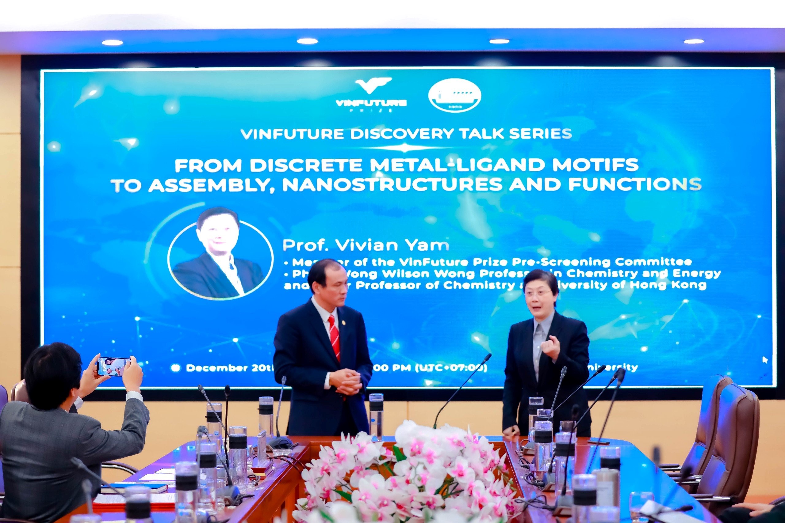 GS.TS Nguyễn Trung Việt – Phó Hiệu trưởng và GS. Vivian Yam trao đổi học thuật trong phiên thảo luận tại Hội thảo