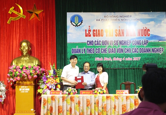 Dưới sự chứng kiến của đại diện Cục Quản lý công sản Bộ tài chính, các đại biểu tham dự buổi lễ, đồng chí Phạm Văn Hưng – Vụ trưởng Vụ tài chính đã ký Biên bản và trao Quyết định giao tài sản cho các đơn vị sự nghiệp công lập theo cơ chế giao vốn cho doanh nghiệp.