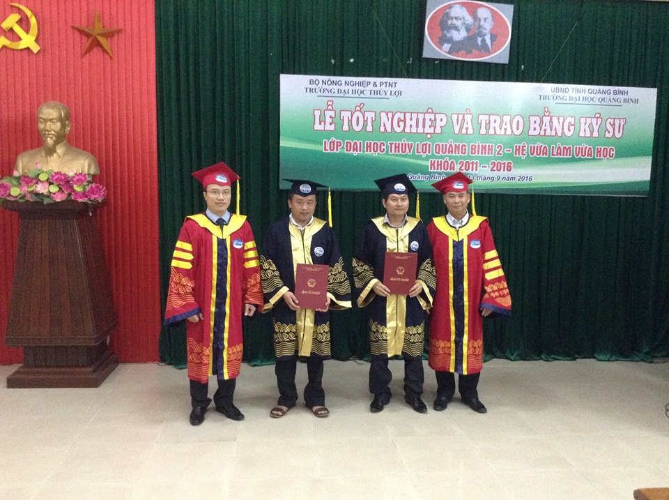 Mới đây, Nhà trường tổ chức bế giảng và trao bằng tốt nghiệp cho 308 học viên thuộc 9 lớp hệ Vừa làm vừa học khóa học 2011 – 2016: Thuận Hải 20C1,C2; Quảng Bình 2; Thanh Hóa 6; Sài Gòn 21; Tiền Giang 1; Sóc Trăng 1; Thái Nguyên 2; Lào Cai 1; Sông Đà 8.