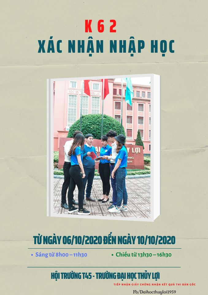 Cách 1: Nhận trực tiếp tại Trường Đại học Thủy lợi – Số 175 Tây Sơn, Đống Đa, Hà Nội. Trường Đại học Thủy lợi tiếp nhận hồ sơ xác nhận nhập học xét tuyển Đại học đợt 1 theo phương thức xét điểm thi THPT năm 2020 như sau: