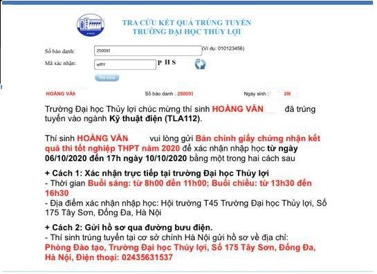 Để biết kết quả trúng tuyển vào Trường Đại học Thủy lợi, các thí sinh truy cập vào địa chỉ website: www.diem.tlu.edu.vn