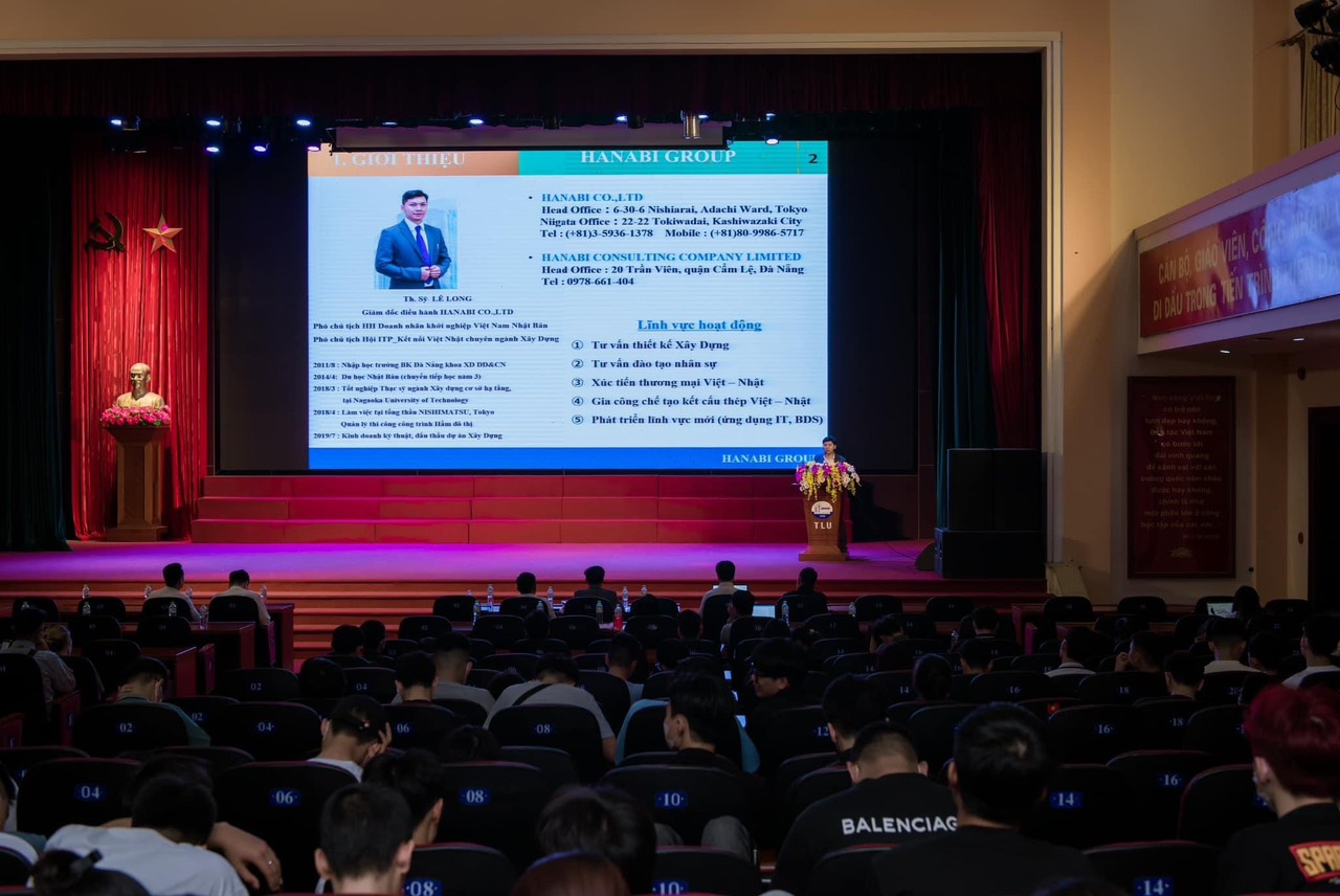 Ông Lê Long – đại diện cho công ty Hanabi Group Nhật Bản cũng có những chia sẻ sâu sắc vì ông cũng xuất phát điểm từ Trường ĐH Bách khoa Đà Nẵng theo chương trình 2+2. Công ty Hanabi triển khai ngành xây dựng, kiến trúc về khách sạn, khu nghỉ dưỡng cao cấp, các công trình cơ sở hạ tầng tại Nhật. Công ty hiện đang tham gia mạng network ITP – Kết nối Việt Nhật chuyên ngành xây dựng. Ông Lê Long mong muốn được hợp tác với Nhà trường giúp đỡ cho sinh viên nhằm rút ngắn khoảng thời gian thích nghi tại Nhật; giúp sinh viên lấy được chứng chỉ đào tạo hành nghề tại Nhật;  chuyển giao phần luyện thi chứng chỉ hành nghề; xác minh các công ty tại Nhật để giúp sinh viên làm việc đúng theo nguyện vọng.