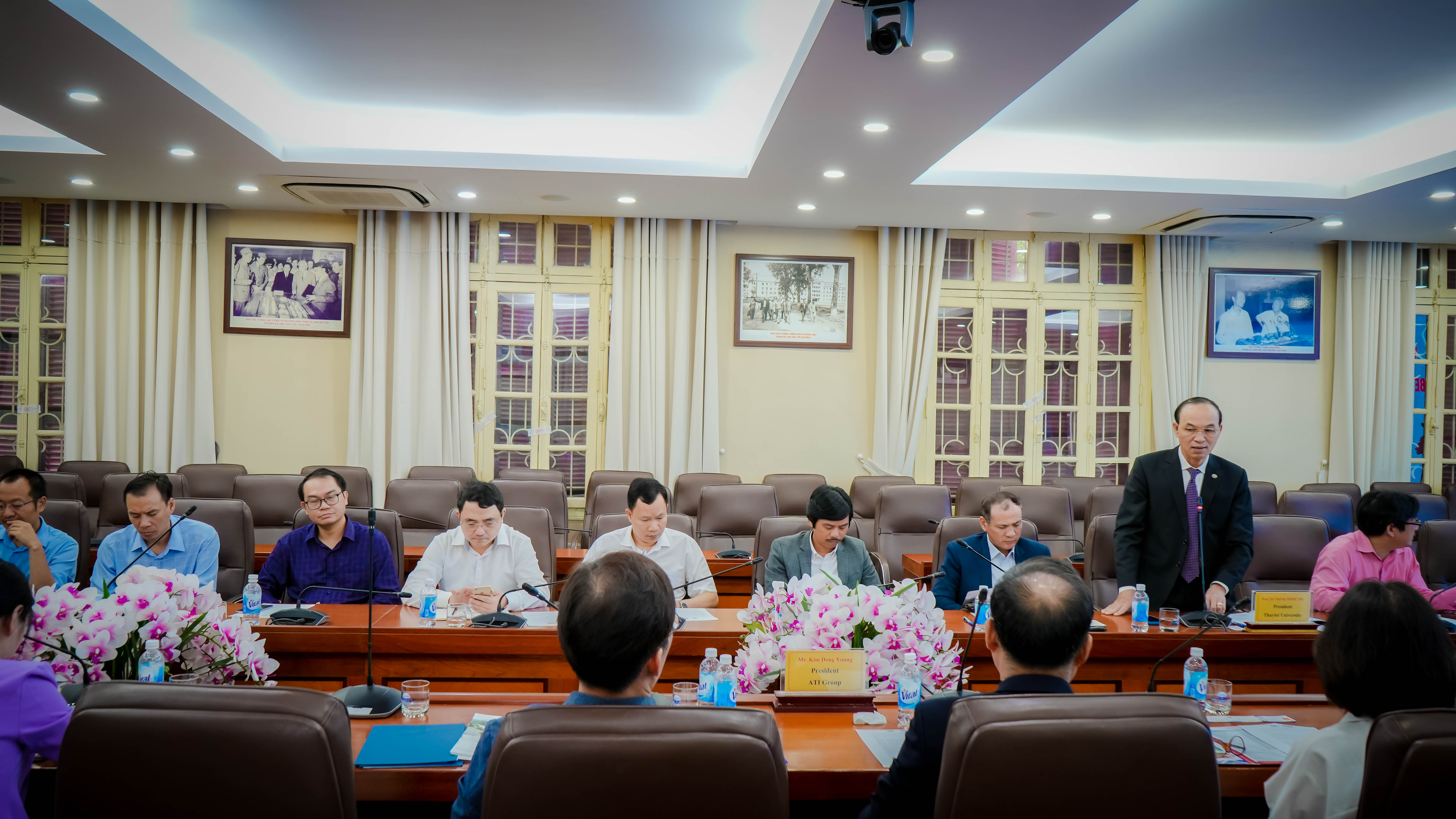 Về phía Trường Đại học Thủy lợi có GS. Trịnh Minh Thụ – Hiệu trưởng; GS. Nguyễn Trung Việt – Phó Hiệu trưởng; đại diện các Phòng, Khoa chức năng trong Nhà trường.