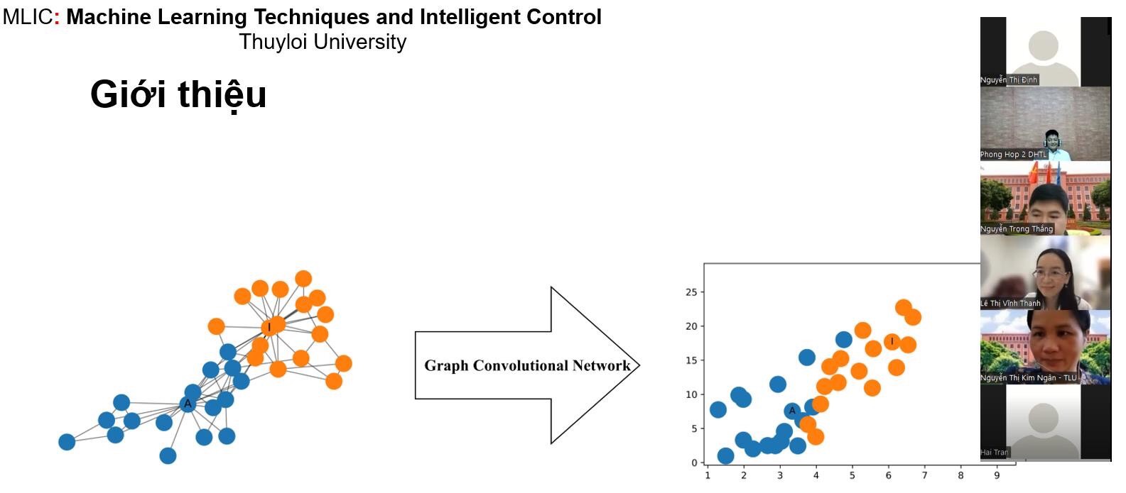 Ngày 27/8/2022 nhóm MLIC (Nghiên cứu Kỹ thuật học máy và điều khiển thông minh/Machine Learning Techniques and Intelligent Control) đã tổ chức hội thảo với chủ đề “Mạng Nơ ron tích chập đồ thị và ứng dụng” do PGS.TS. Nguyễn Hữu Quỳnh trình bày. Trong nghiên cứu này, nhóm MLIC giới thiệu về cách thực hiện học sâu trên các đồ thị với mạng nơ ron tích chập đồ thị GCN (Graph Convolutional Networks), một loại mạng nơ ron mạnh mẽ được thiết kế để làm việc trực tiếp trên các đồ thị và tận dụng thông tin cấu trúc của nó. Bên cạnh đó nhóm MLIC cũng giới thiệu một số ứng dụng điển hình của nó.