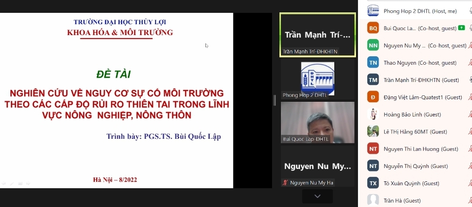 Ngày 30/8/2022 nhóm ROOM (Nghiên cứu các hợp chất hữu cơ/Research of Organic Matter) đã tổ chức hội thảo với chủ đề “Đánh giá thực trạng và nghiên cứu rủi ro môi trường tại một số tỉnh thành phía Bắc của Việt Nam”. Tại hội thảo nhóm ROOM đã trình bày 03 bài tham luận về: (1) Nghiên cứu về sự cố môi trường trong nông nghiệp, nông thôn khi có thiên tai xảy ra do PGS.TS Bùi Quốc Lập trình bày; (2) Nghiên cứu phân tích, đánh giá sự xuất hiện của hợp chất methylsiloxane mạch vòng dễ bay hơi trong môi trường Hà Nội do NCS Nguyễn Nữ Mỹ Hà trình bày; (3) Đánh giá thực trạng môi trường các vùng nuôi tôm tỉnh Nam Định do bà Pham Trương Thảo Nguyên trình bày.