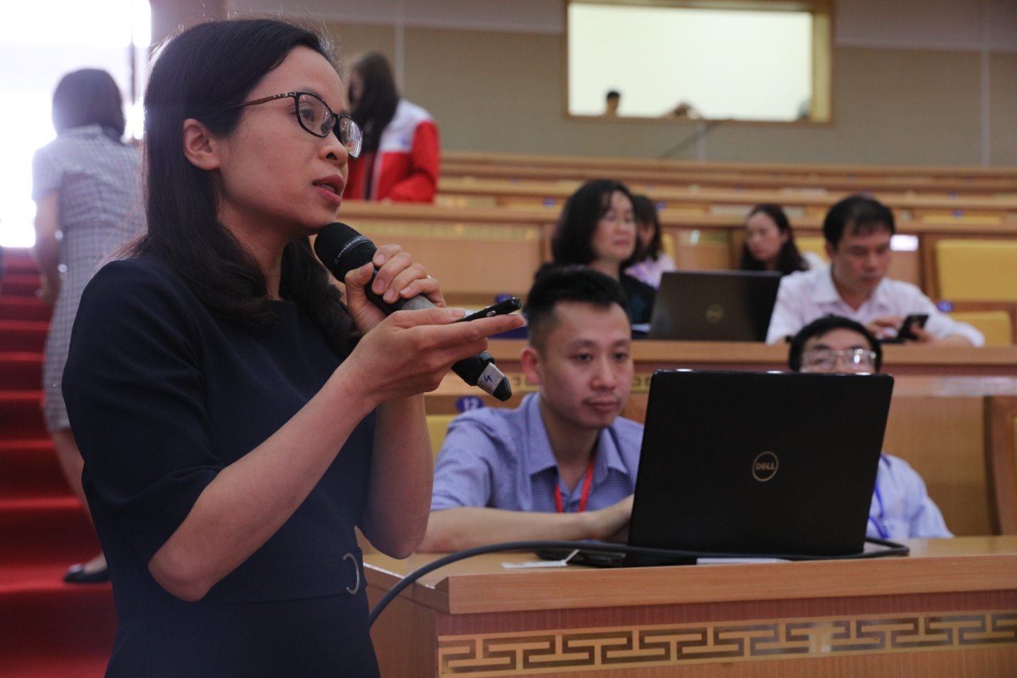 Th.S Đinh Thị Lan Phương trình bày báo cáo về Ảnh hưởng của kỹ thuật tưới tiết kiệm nước đến động thái kẽm trong đất lúa phù sa sông Hồng