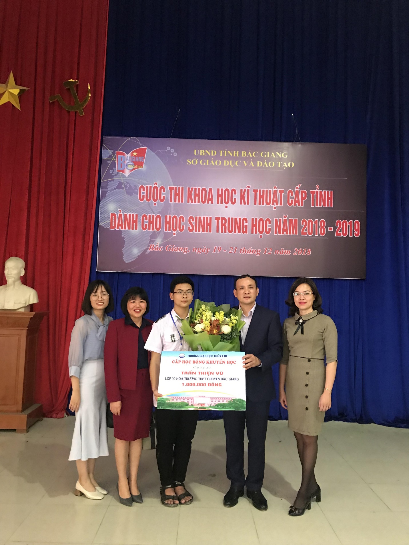 Có mặt tại lễ trao giải cuộc thi KHKT cấp tỉnh dành cho học sinh phổ thông tỉnh Bắc Giang được tổ chức trong hai ngày 19 và 20 tháng 12 năm 2018, tại Trường THPT Giáp Hải; Trường Đại học Thủy lợi cũng trao tặng cho học sinh Trần Thiện Vũ – Lớp 10 Chuyên Hóa – Trường THPT Chuyên Bắc Giang học bổng khuyến học trị giá 1 triệu đồng nhằm động viên tinh thần ham học hỏi, nghiên cứu của thí sinh.
