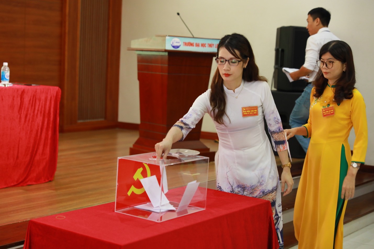Thực hiện quy trình, Đại hội tiến hành bầu cơ quan điều hành và giúp việc Đại hội, gồm: bầu Đoàn chủ tịch Đại hội và Thư ký; trong đó đồng chí Đặng Hương Giang – Ủy viên Ban chấp hành Đảng bộ Trường, Bí thư chi bộ Công tác sinh viên – Văn phòng các đoàn thể là Chủ tịch Đại hội. Đồng chí Nguyễn Thị Hồng Vĩnh – Đảng viên – Trưởng phòng, Phụ trách Văn phòng Đảng ủy – Ủy viên; đồng chí Nguyễn Đình Trinh – Đảng viên, Phó trưởng Phòng Chính trị và CTSV – Ủy viên