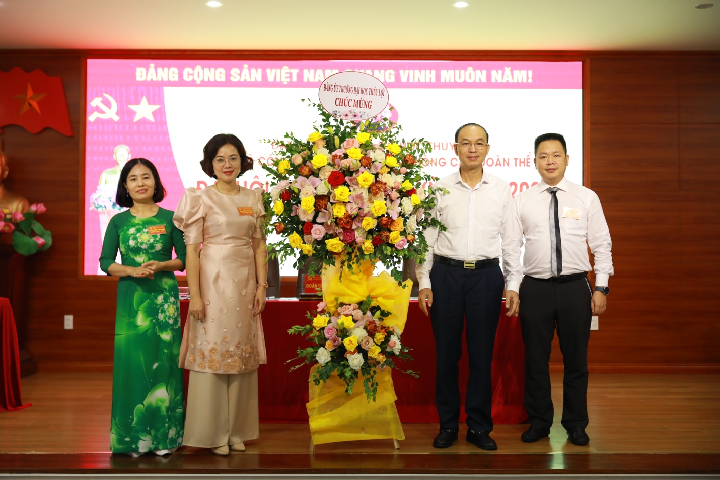 GS.TS Trịnh Minh Thụ – Phó Bí thư Đảng ủy – Hiệu trưởng đại diện Đảng ủy Trường tặng hoa chúc mừng Chi ủy Chi bộ Công tác sinh viên – Văn phòng các đoàn thể nhiệm kỳ 2022-2025